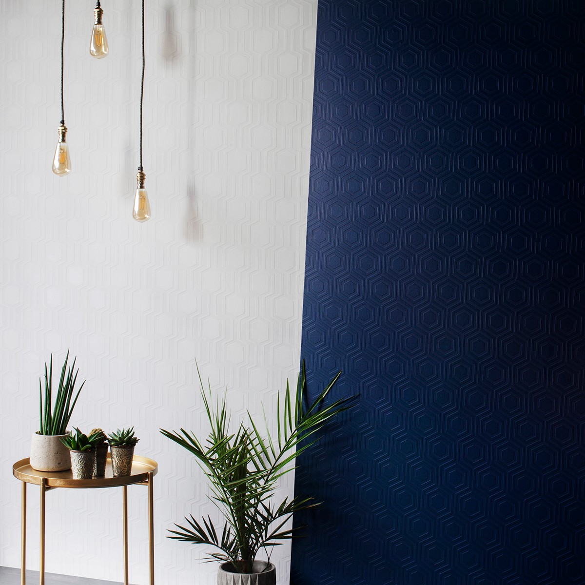 | A retro take on a traditional honeycomb design. The textured design would look lovely in any color, or can be left white for subtle visual intrigue. Hive is a unpasted, vinyl wallpaper. Anaglypta XII Page: 2 Washable Strippable Paintable Unpasted Match: Straight Roll width: 20.5in Roll length: 33ft Roll coverage: About 56.4 square feet |