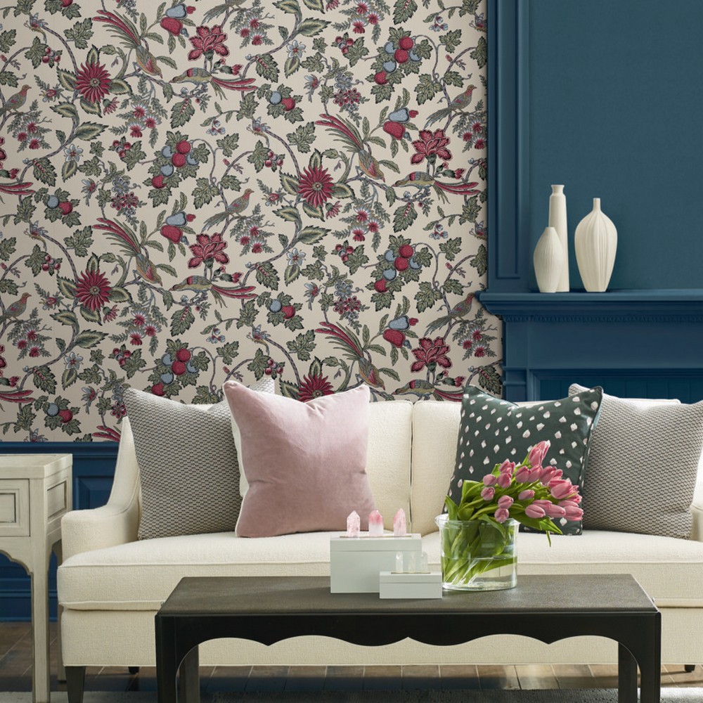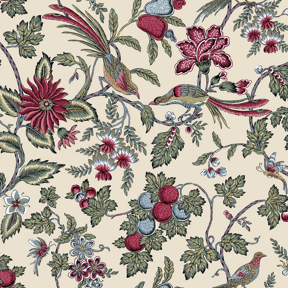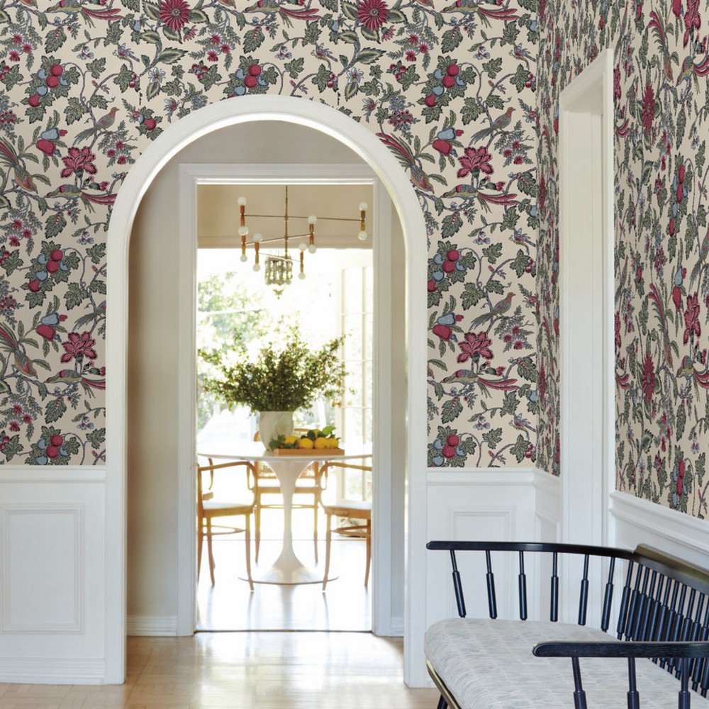 | Antonina Vella Antonina Vella Jardin | Parterre Raspberry Jacobean Wallpaper Match: Drop Page: 1 Repeat: 25.3 Washable Roll is 27 Inches in width and 27 Feet in Length With About 60.8 square feet Coverage Unpasted Strippable Paste the Wall Colors: Purples Traditional Birds Animals |