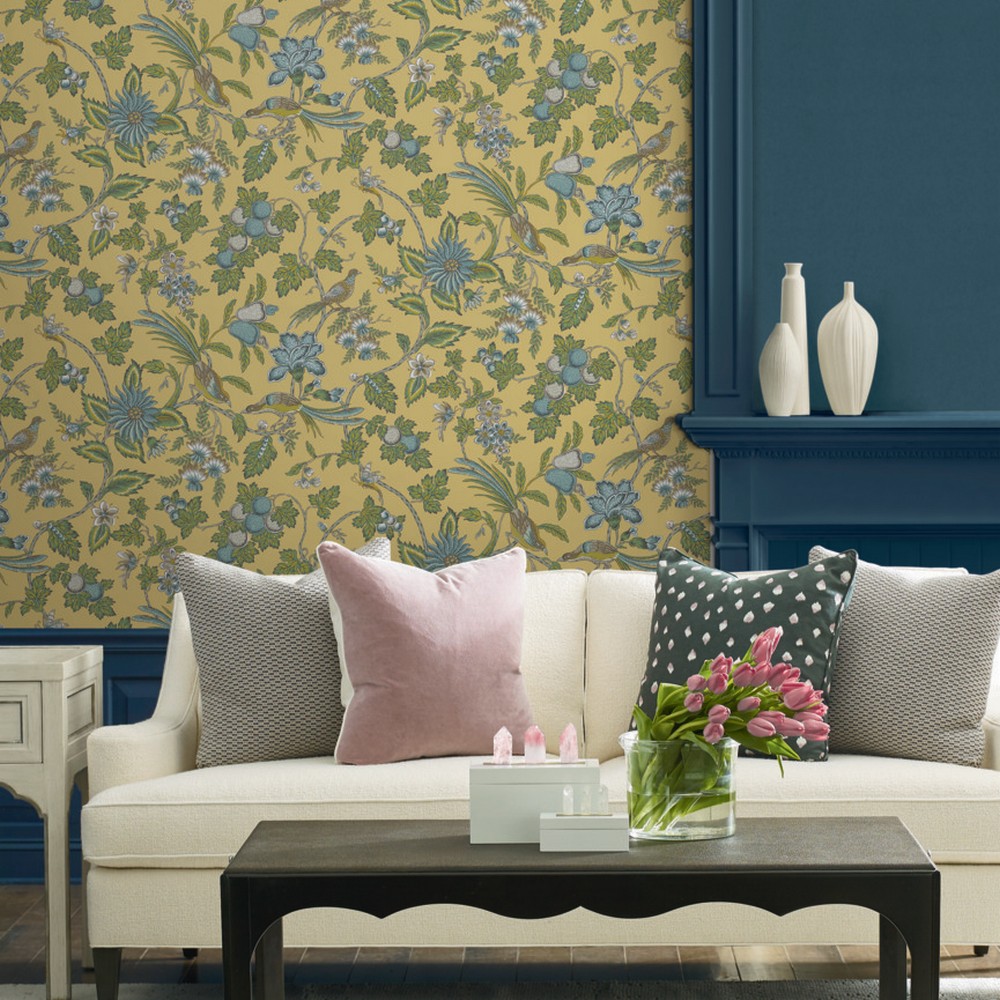 | Antonina Vella Antonina Vella Jardin | Parterre Light Yellow Jacobean Wallpaper Match: Drop Page: 4 Repeat: 25.3 Washable Roll is 27 Inches in width and 27 Feet in Length With About 60.8 square feet Coverage Unpasted Strippable Paste the Wall Colors: Yellows Traditional Animals Animals |