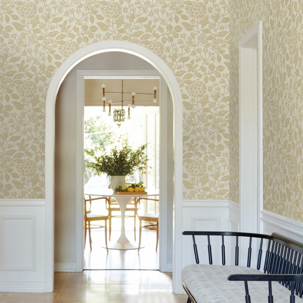 | Antonina Vella Antonina Vella Jardin | Rowen Honey Botanical Wallpaper Match: Straight Page: 29 Repeat: 25.3 Washable Roll is 27 Inches in width and 27 Feet in Length With About 60.8 square feet Coverage Unpasted Strippable Paste the Wall Colors: Yellows Farmhouse Botanical Botanical |