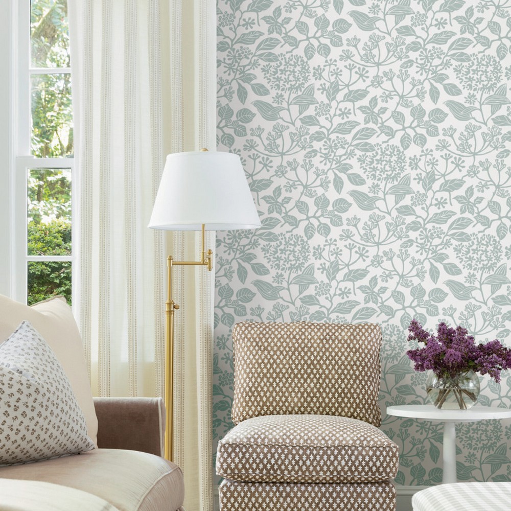 | Antonina Vella Antonina Vella Jardin | Rowen Light Blue Botanical Wallpaper Match: Straight Page: 28 Repeat: 25.3 Washable Roll is 27 Inches in width and 27 Feet in Length With About 60.8 square feet Coverage Unpasted Strippable Paste the Wall Colors: Blues Farmhouse Botanical Botanical |