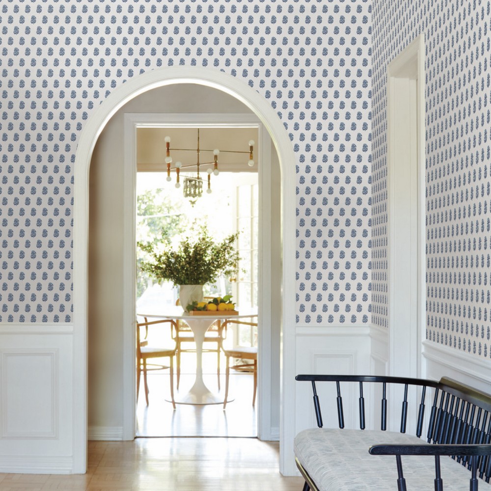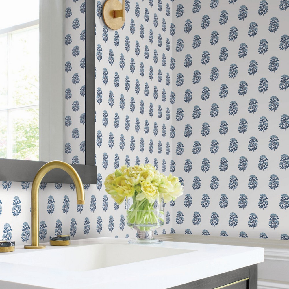 | Antonina Vella Antonina Vella Jardin | Sylvie Blue Floral Wallpaper Match: Straight Page: 16 Repeat: 25.3 Washable Roll is 27 Inches in width and 27 Feet in Length With About 60.8 square feet Coverage Unpasted Strippable Paste the Wall Colors: Blues Transitional Flowers Botanical |
