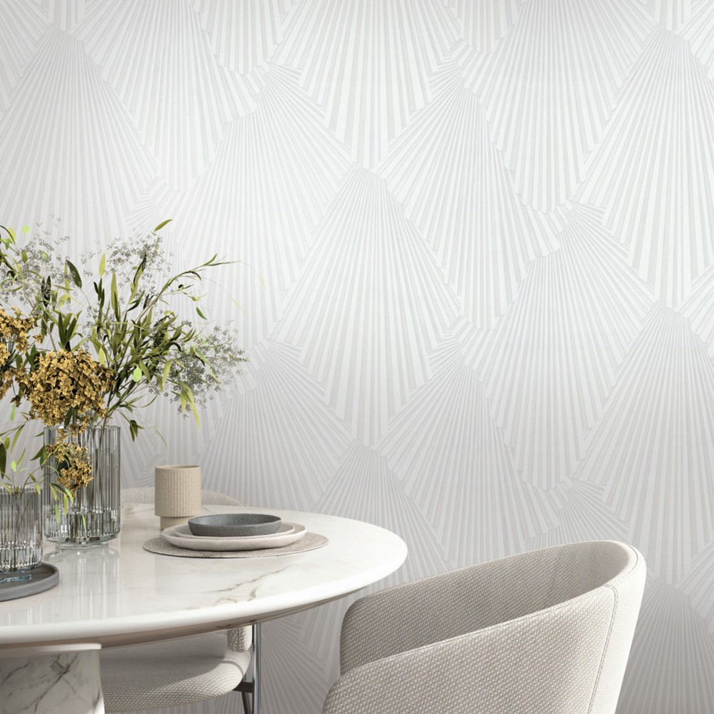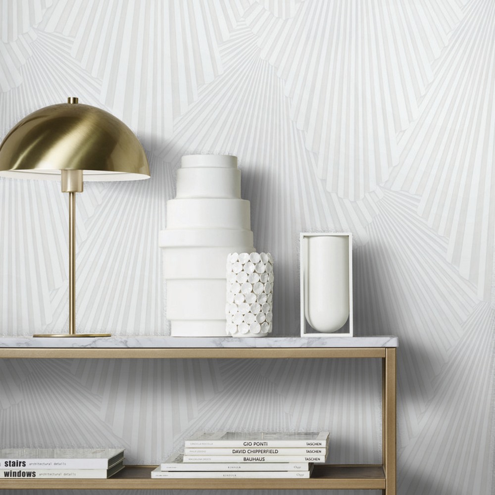 | Antonina Vella Antonina Vella Opulent Accents | Lumiere White Deco Geo Wallpaper Match: Drop Page: 24 Repeat: 25.2 Scrubbable Roll is 27.6 Inches in width and 33 Feet in Length With About 75.9 square feet Coverage Unpasted Strippable Paste the Wall Colors: Whites & Off-Whites Traditional Damask Graphics |
