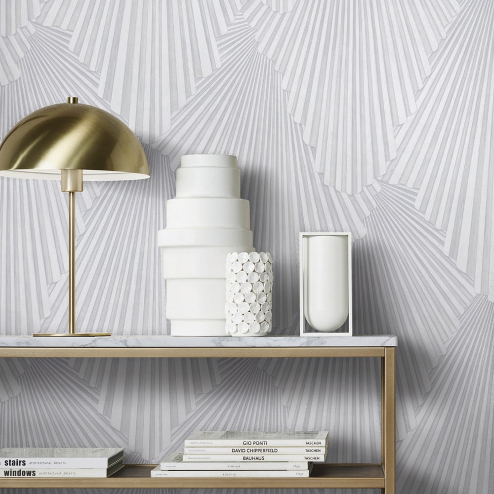 | Antonina Vella Antonina Vella Opulent Accents | Lumiere Off-White Deco Geo Wallpaper Match: Drop Page: 21 Repeat: 25.2 Scrubbable Roll is 27.6 Inches in width and 33 Feet in Length With About 75.9 square feet Coverage Unpasted Strippable Paste the Wall Colors: Whites & Off-Whites Traditional Damask Graphics |