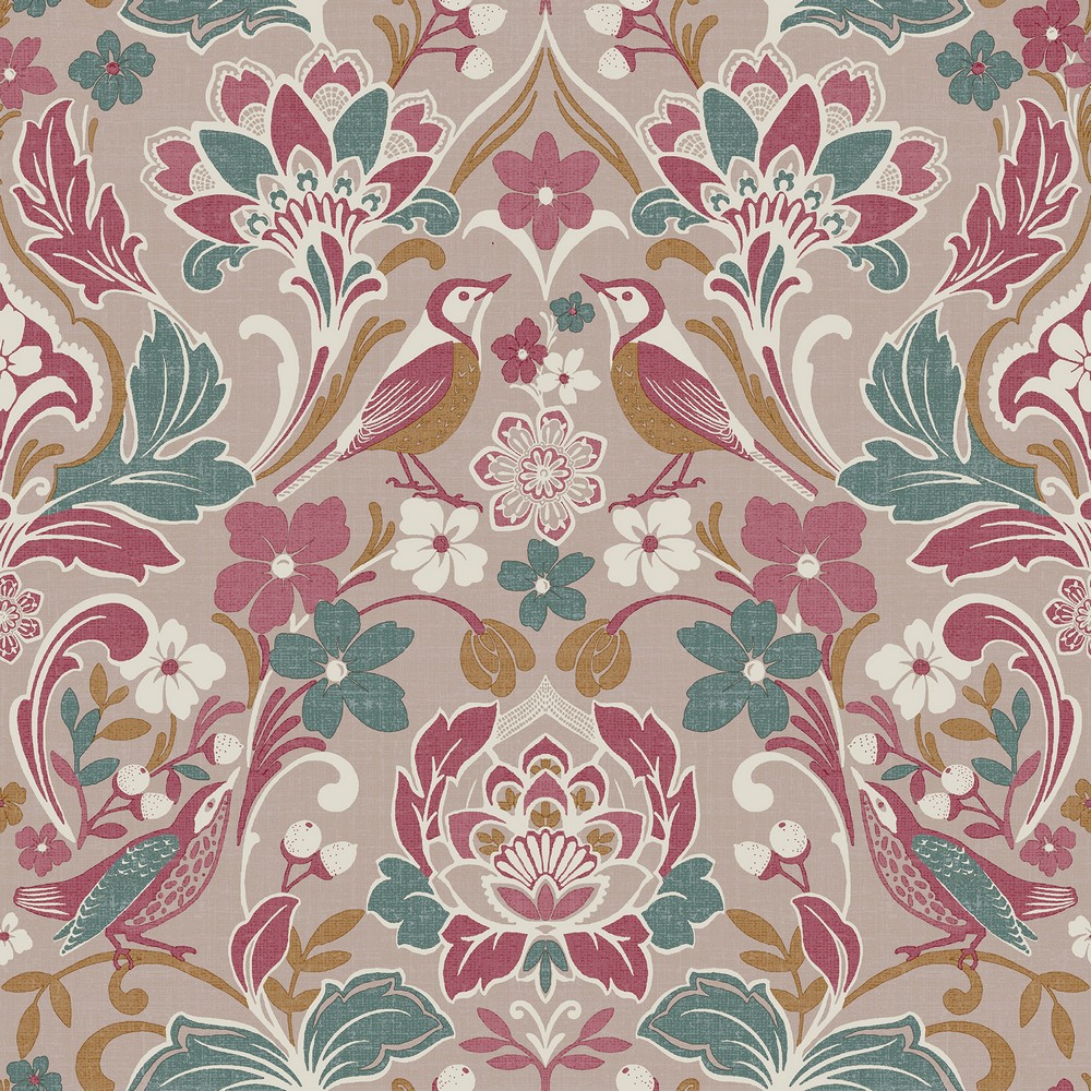 Arthouse Arthouse | Birdy Pink Nuthatch Floral Wallpaper
