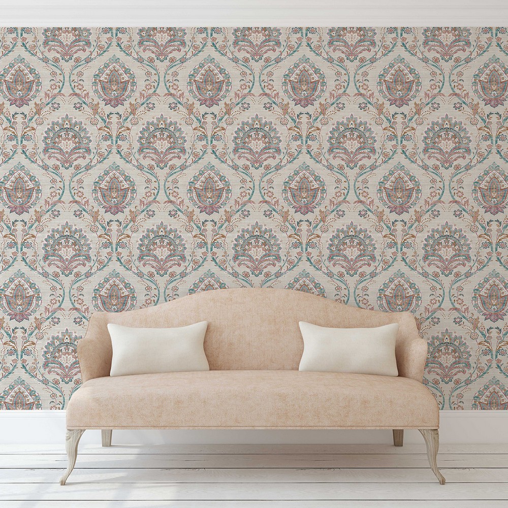 | Arthouse Arthouse | Teigen Multicolor Floral Damask Wallpaper Match: Straight Repeat: 25.2 Scrubbable Roll is 20.9 Inches in width and 33 Feet in Length With About 57.5 square feet Coverage Unpasted Peelable Paste the Paper Colors: Blues Bohemian Damask Graphics |