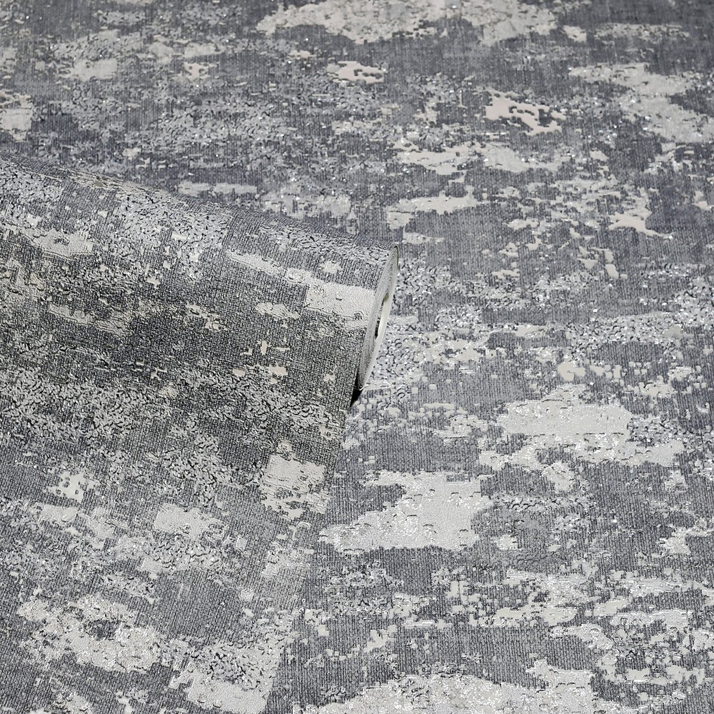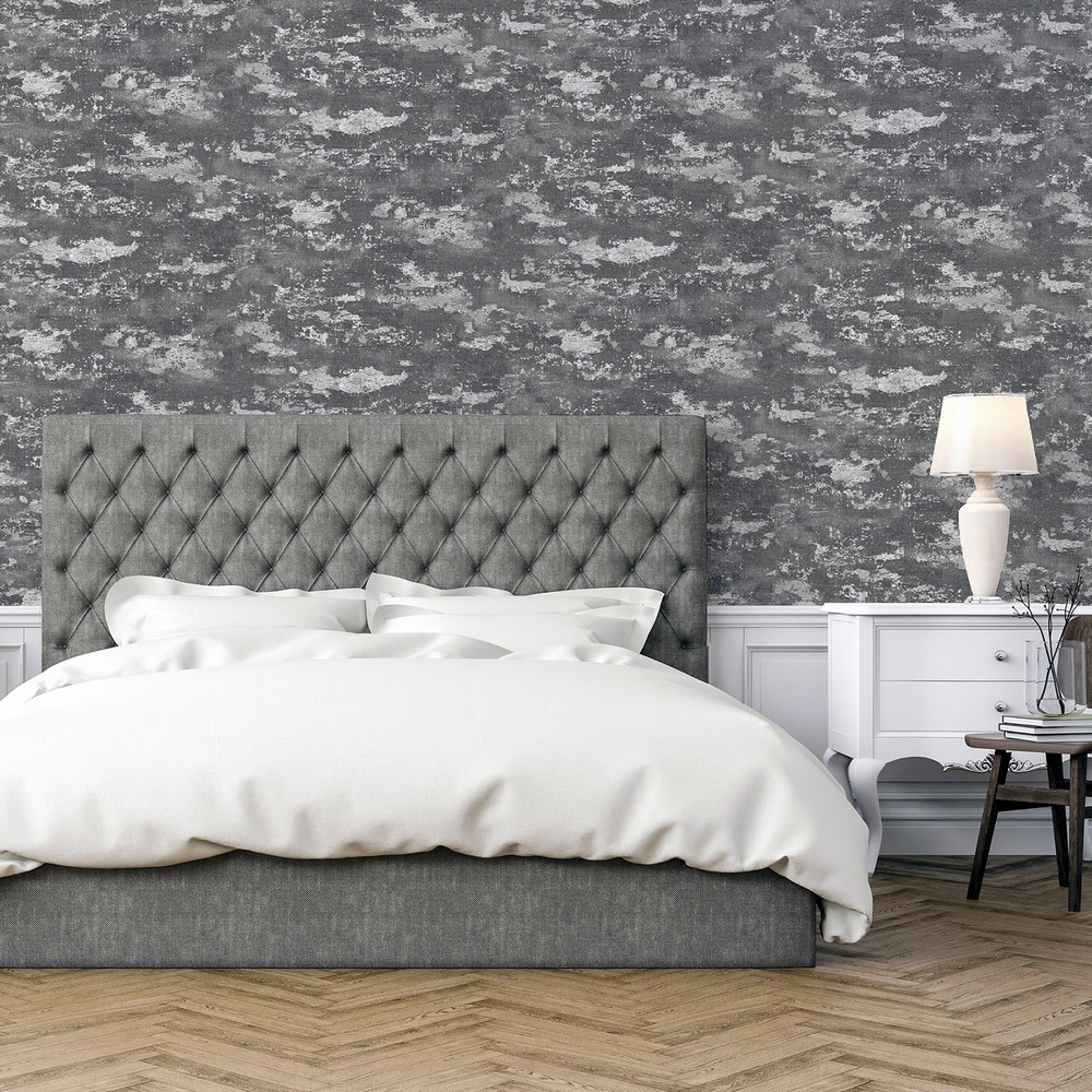 | Arthouse Arthouse | Mercer Dark Grey Patina Wallpaper Match: Drop Repeat: 20.9 Scrubbable Roll is 20.9 Inches in width and 33 Feet in Length With About 57.5 square feet Coverage Unpasted Peelable Paste the Paper Colors: Greys Masculine Plaster Effects Graphics |