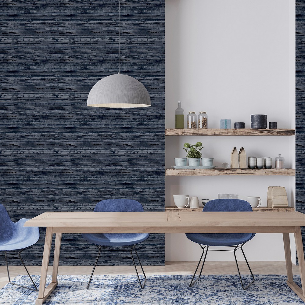 | Arthouse Arthouse | Philomena Denim Striated Wallpaper Match: Straight Repeat: 20.9 Scrubbable Roll is 20.9 Inches in width and 33 Feet in Length With About 57.5 square feet Coverage Unpasted Peelable Paste the Paper Colors: Blues Modern Texture Pattern Graphics |