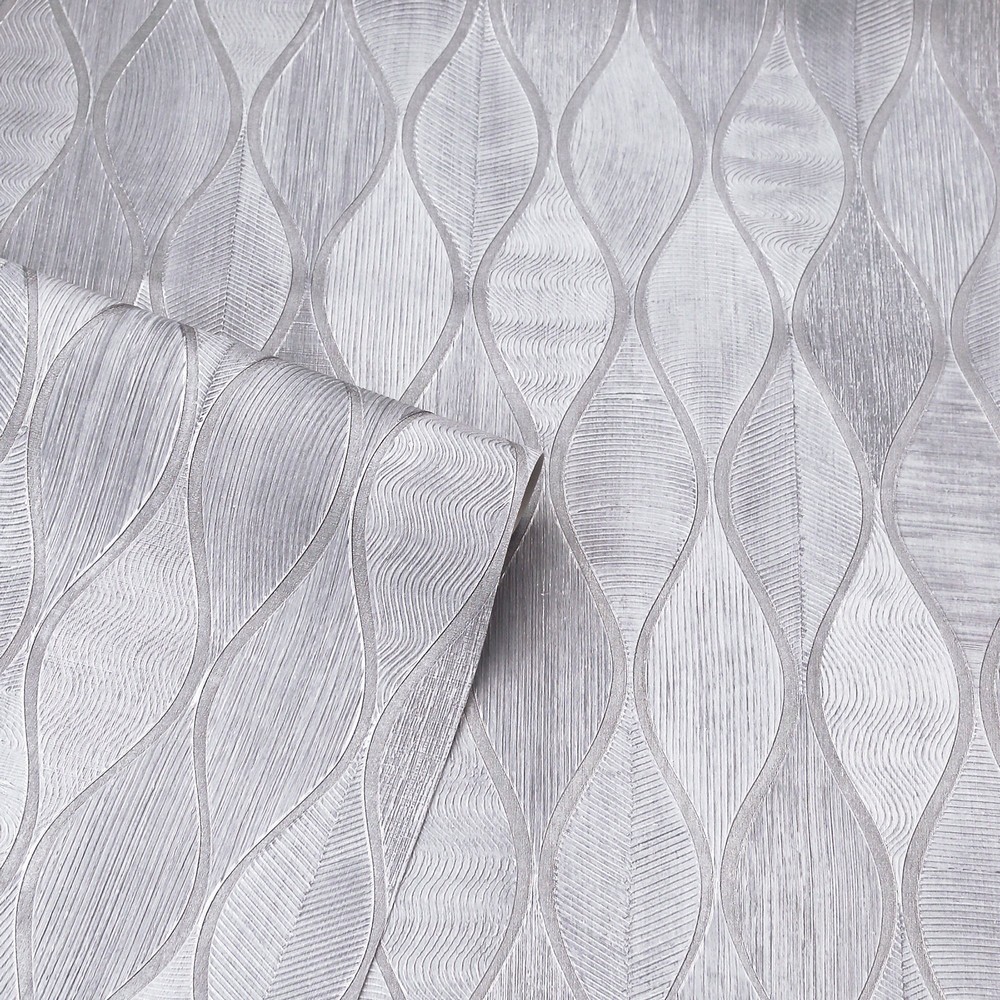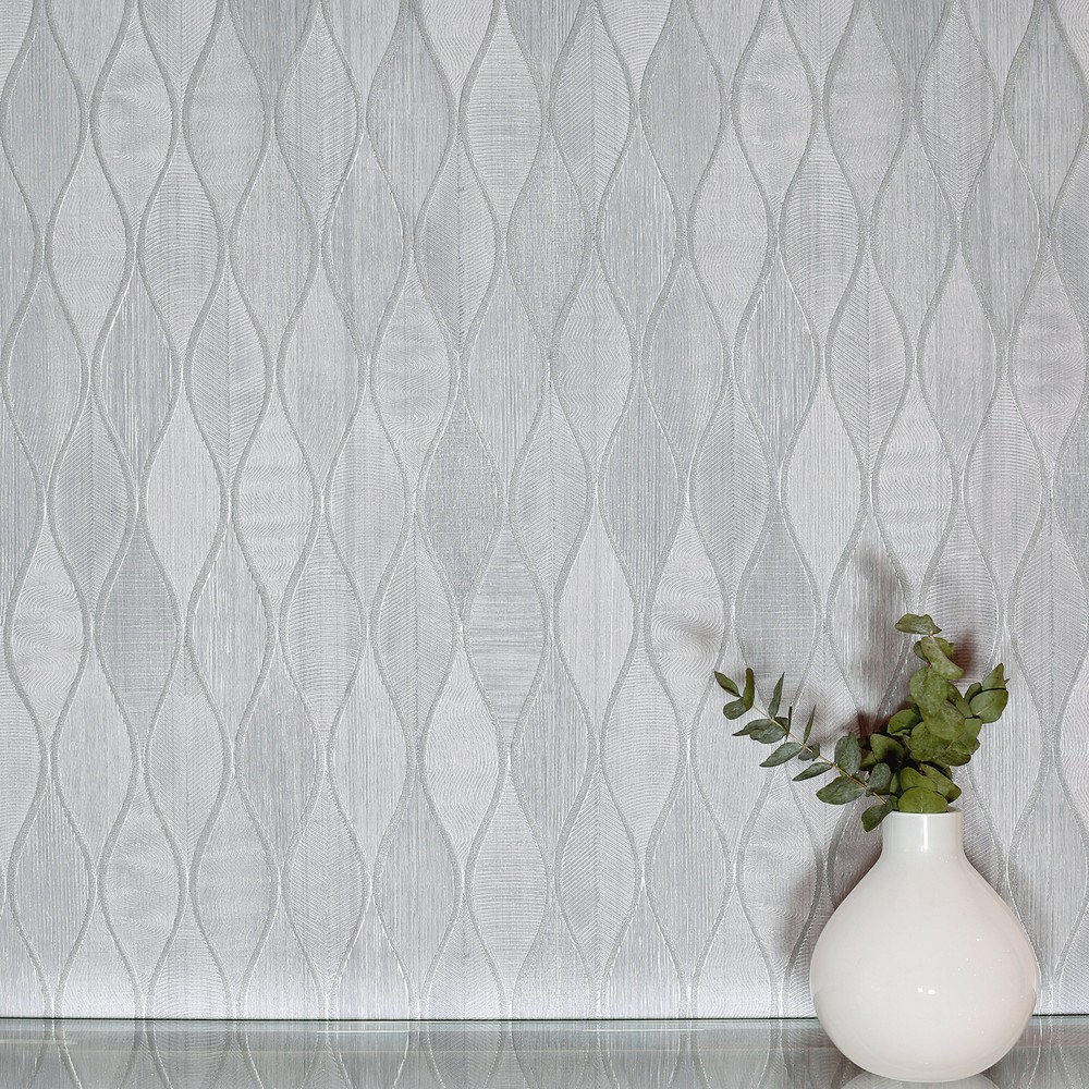 | Arthouse Arthouse | Mattais Silver Ogee Wallpaper Match: Straight Repeat: 25.2 Scrubbable Roll is 20.9 Inches in width and 33 Feet in Length With About 57.5 square feet Coverage Unpasted Strippable Paste the Wall Colors: Greys Modern Ogee Graphics |