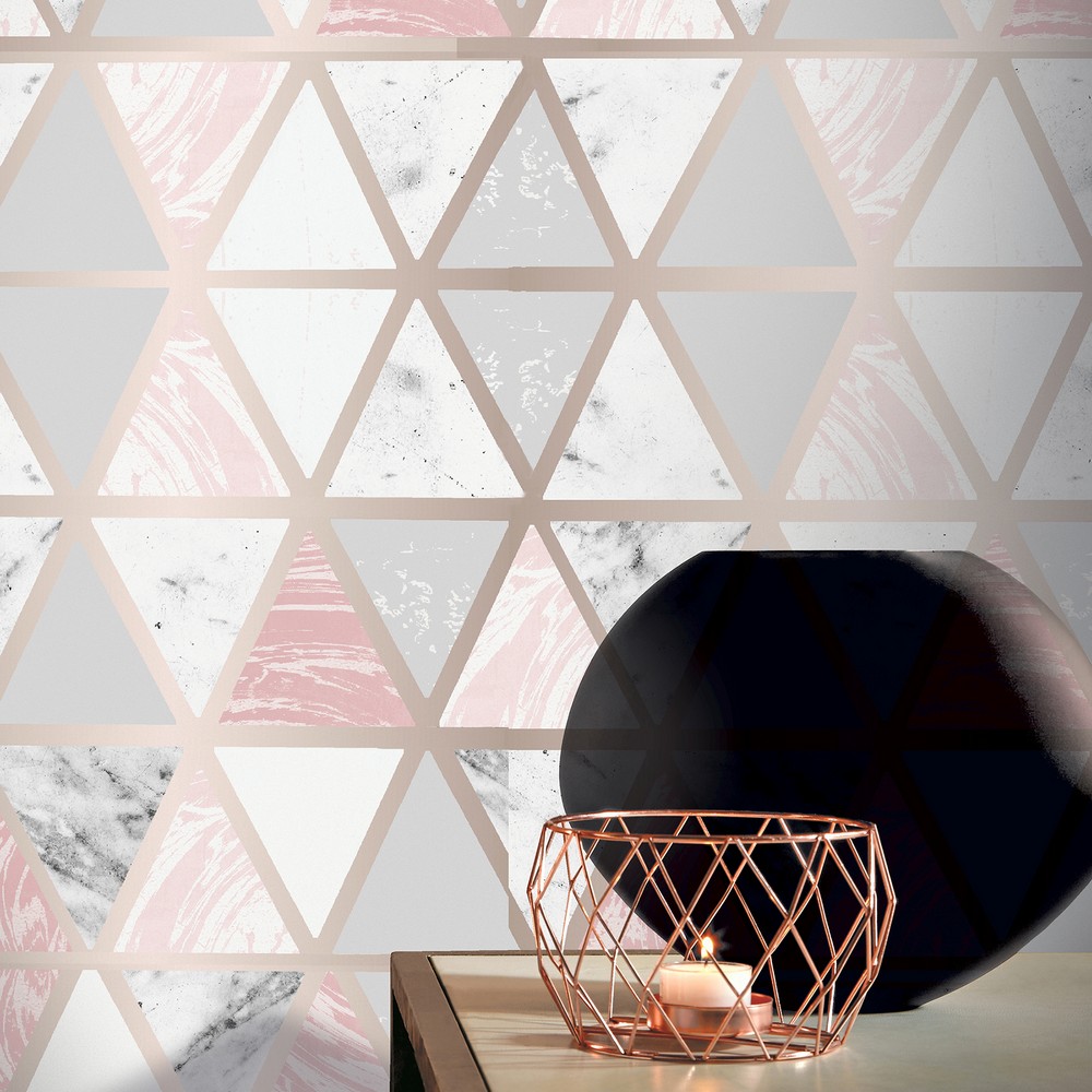 | Arthouse Arthouse | Marcy Pink Triangle Grid Wallpaper Match: Drop Repeat: 25.2 Washable Roll is 20.9 Inches in width and 33 Feet in Length With About 57.5 square feet Coverage Unpasted Peelable Paste the Paper Colors: Pinks Modern Geometrics Graphics |