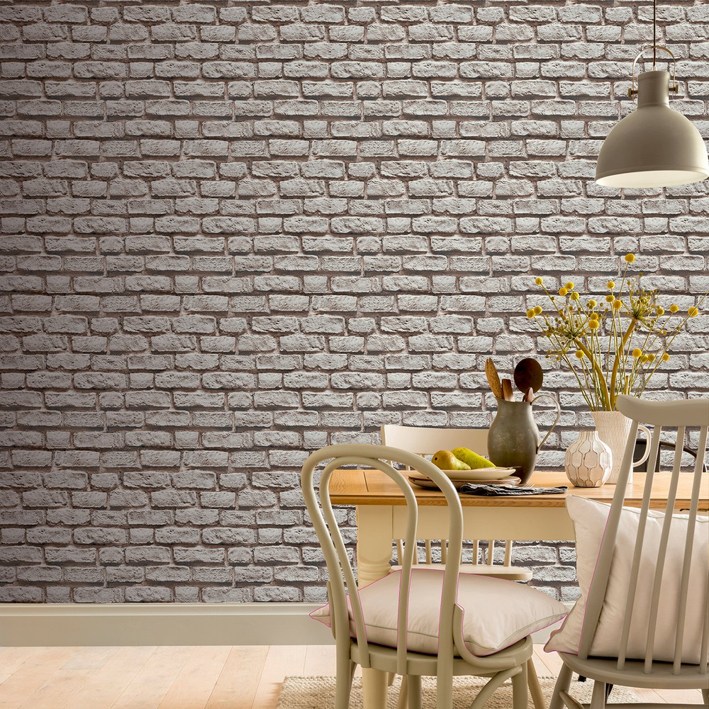 | Arthouse Arthouse | Horace Neutral Brick Wallpaper Match: Straight Repeat: 25.2 Spongeable Roll is 20.9 Inches in width and 33 Feet in Length With About 57.5 square feet Coverage Unpasted Wet Removable Paste the Paper Colors: Neutrals Masculine Brick Graphics |