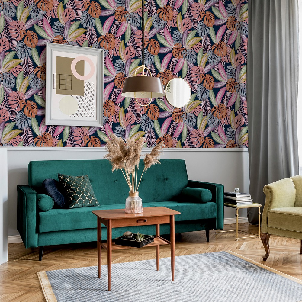 | Arthouse Arthouse | Vivette Multicolor Hot Tropic Wallpaper Match: Drop Repeat: 20.9 Spongeable Roll is 20.9 Inches in width and 33 Feet in Length With About 57.5 square feet Coverage Unpasted Wet Removable Paste the Paper Colors: Multicolor Tropical Botanical Botanical |