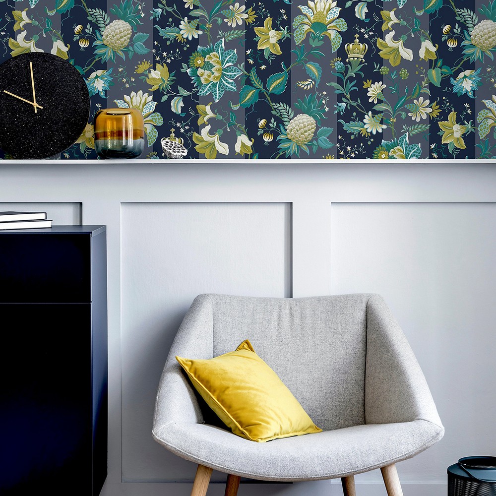 Arthouse Arthouse | Cornelia Navy Floral Stripe Wallpaper
