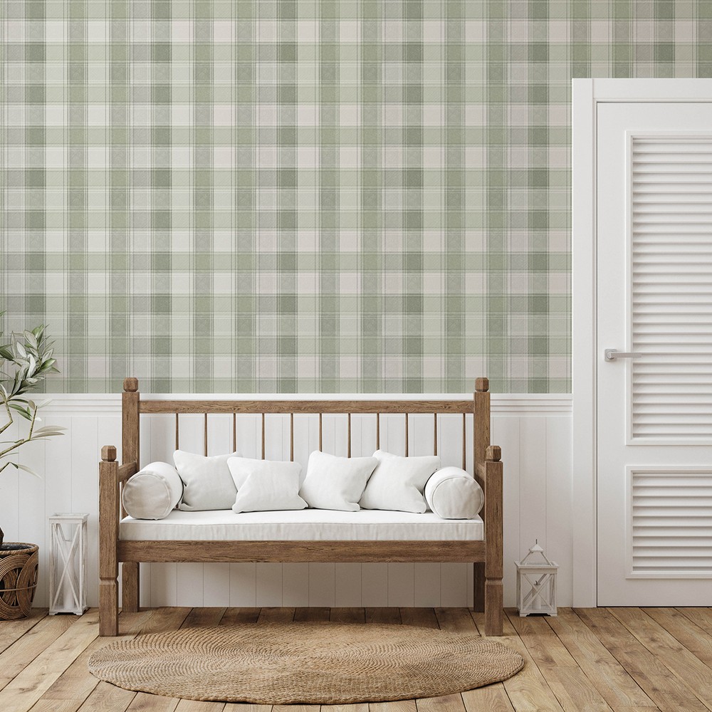 | Arthouse Arthouse | Rita Green Country Check Wallpaper Match: Straight Repeat: 20.9 Washable Roll is 20.9 Inches in width and 33 Feet in Length With About 57.5 square feet Coverage Unpasted Peelable Paste the Paper Colors: Greens Farmhouse Plaids Graphics |