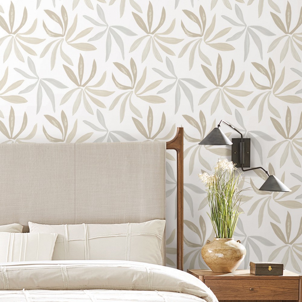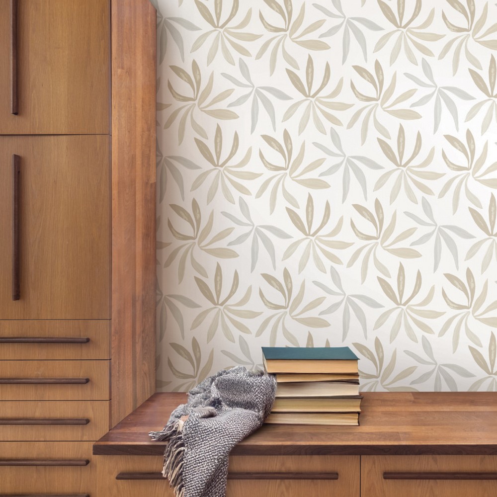 | York Wallcoverings Artisan Studio | Little Garden Neutral & Pearl Wallpaper Match: Straight Page: 48 Repeat: 20.5 Washable Roll is 27 Inches in width and 27 Feet in Length With About 60.8 square feet Coverage Unpasted Strippable Paste the Wall Colors: Beiges Bohemian Tropical |