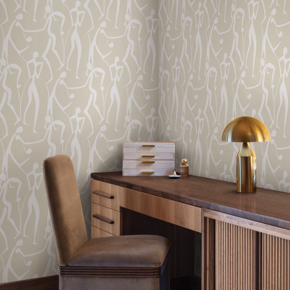 | York Wallcoverings Artisan Studio | Joyful Dancers Nude Wallpaper Match: Straight Page: 9 Repeat: 24 Washable Roll is 20.5 Inches in width and 33 Feet in Length With About 56.4 square feet Coverage Unpasted Strippable Paste the Wall Colors: Beiges Modern Bohemian |