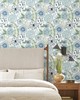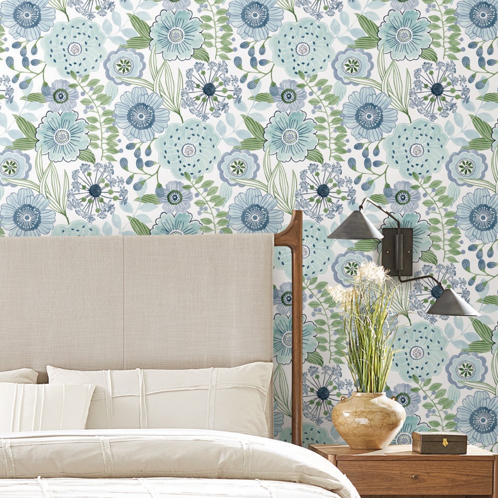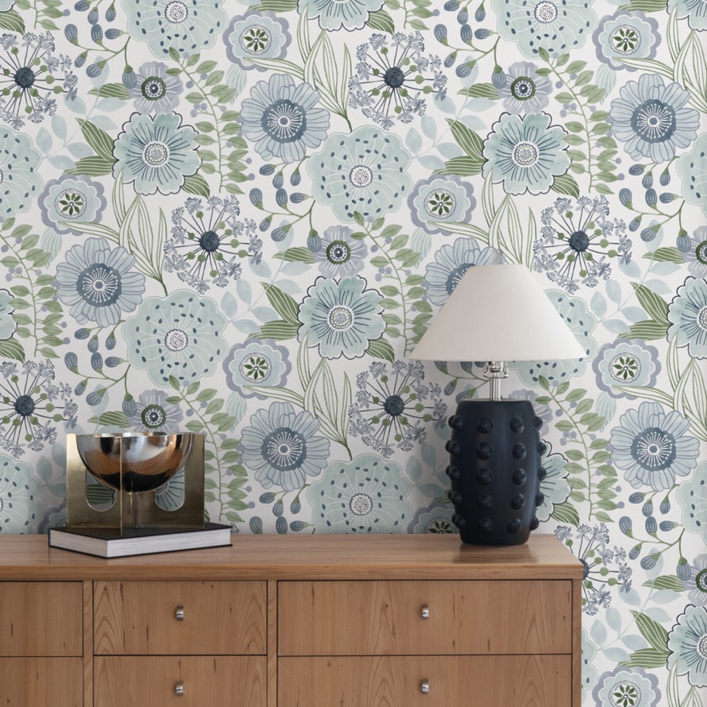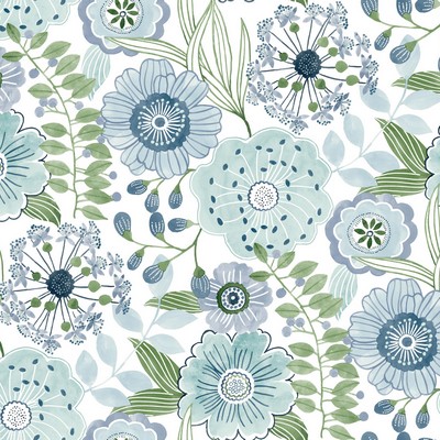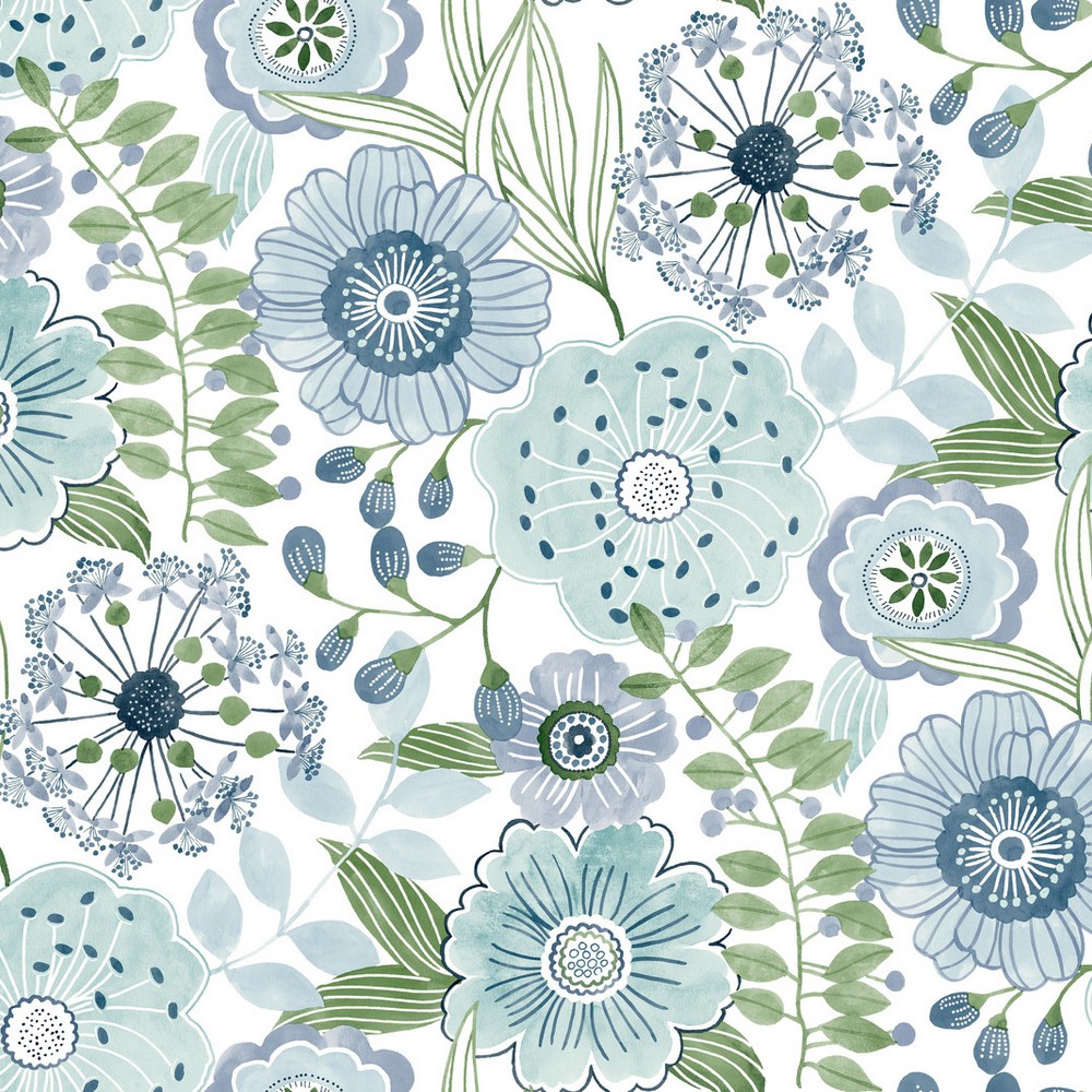 | York Wallcoverings Artisan Studio | Artistic Bouquet Alpine & Leaf Wallpaper Match: Straight Page: 19 Repeat: 24 Washable Roll is 27 Inches in width and 27 Feet in Length With About 60.8 square feet Coverage Unpasted Strippable Paste the Wall Colors: Blues Whimsical Florals |