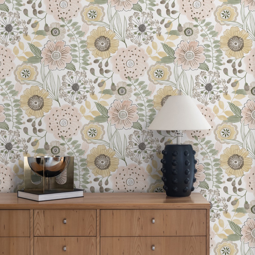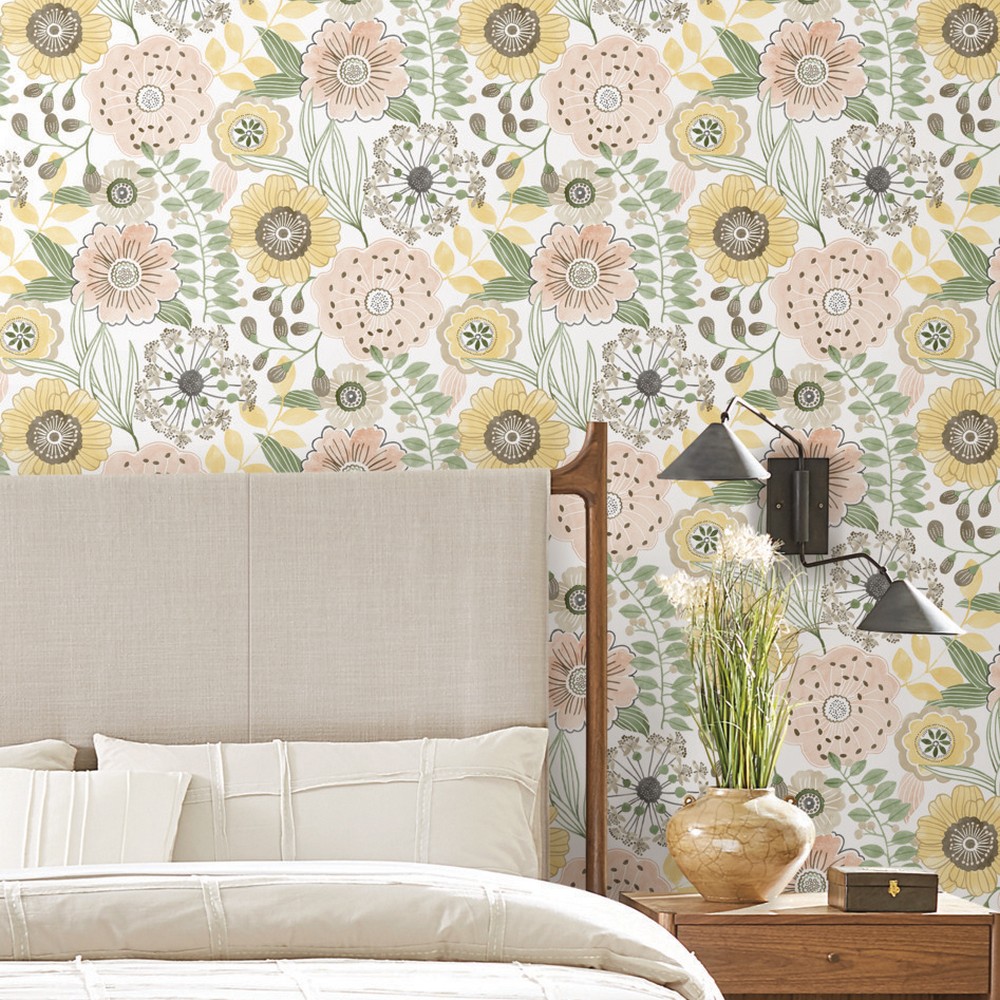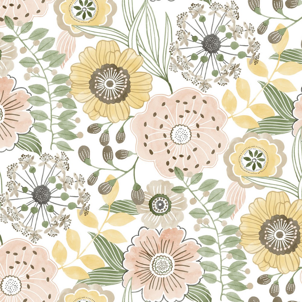 York Wallcovering Artistic Bouquet Coral & Lemon