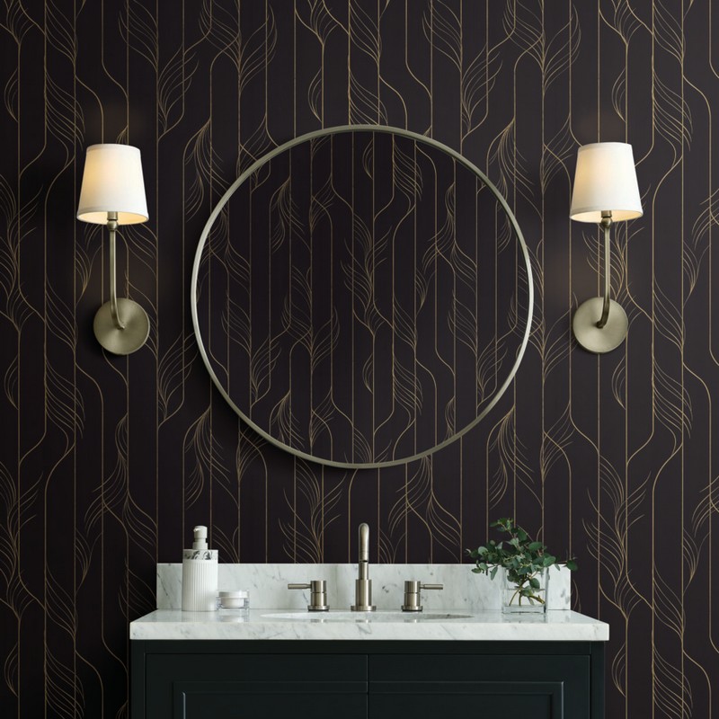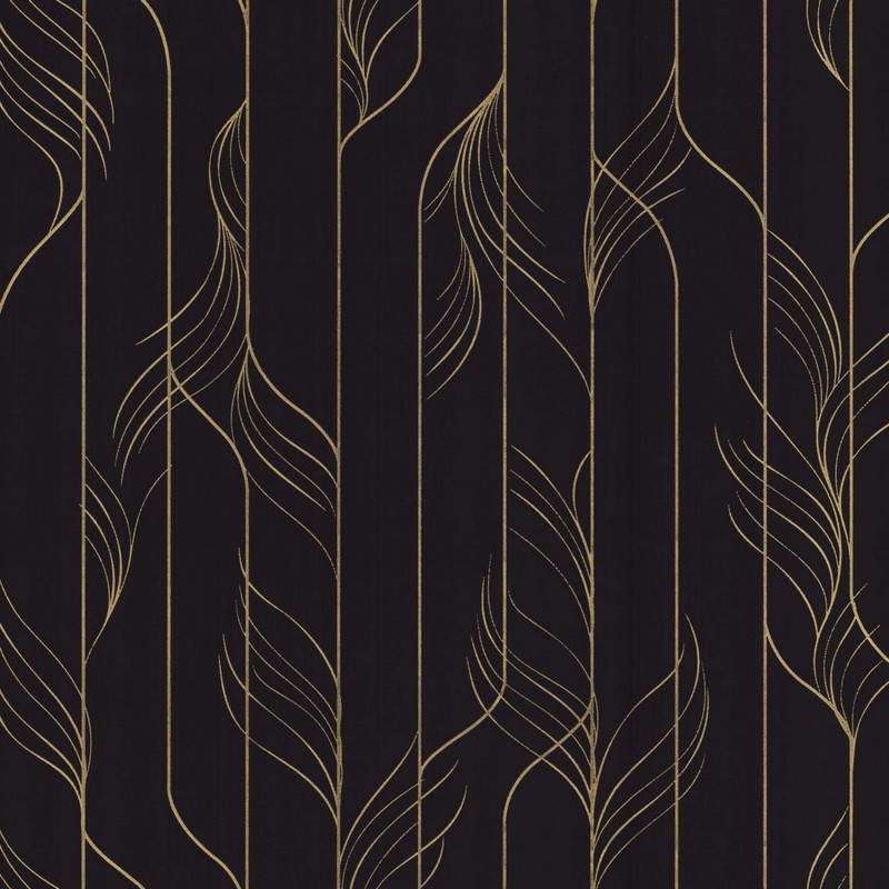 | Candice Olson Candice Olson Decadence II | Elemental Thread Black & Gold Wallpaper Match: Straight Page: 17 Repeat: 25.3 Spongeable Roll is 27 Inches in width and 27 Feet in Length With About 60.8 square feet Coverage Unpasted Wet Removable Paste the Wall Colors: Blacks Modern Stripes |