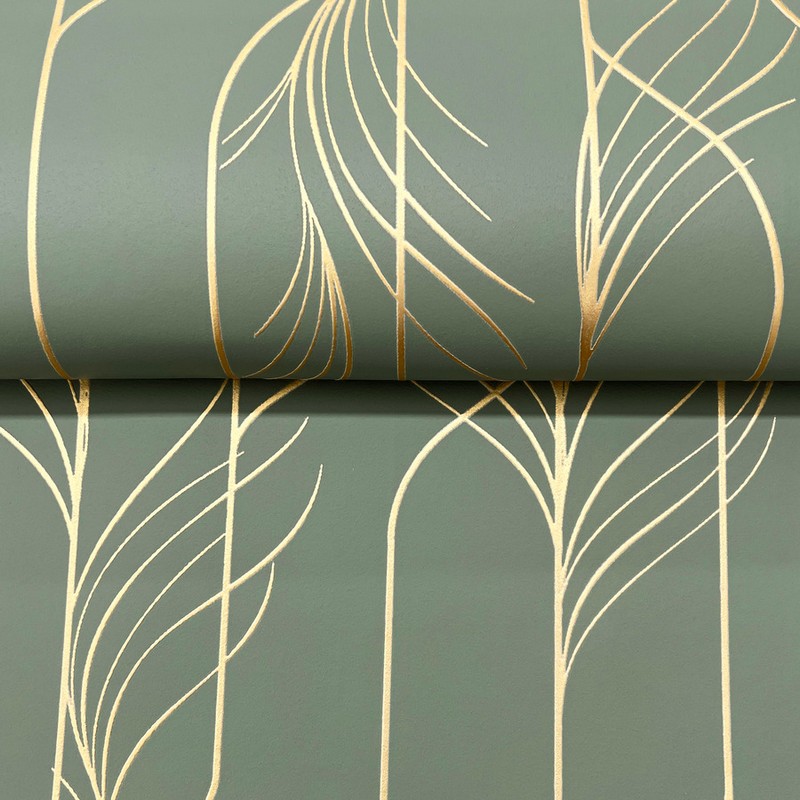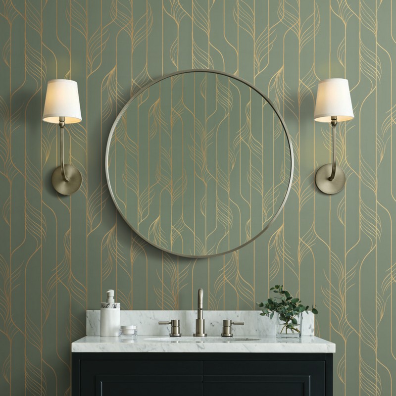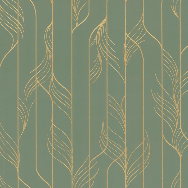 | Candice Olson Candice Olson Decadence II | Elemental Thread Green & Gold Wallpaper Match: Straight Page: 19 Repeat: 25.3 Spongeable Roll is 27 Inches in width and 27 Feet in Length With About 60.8 square feet Coverage Unpasted Wet Removable Paste the Wall Colors: Greens Modern Stripes |