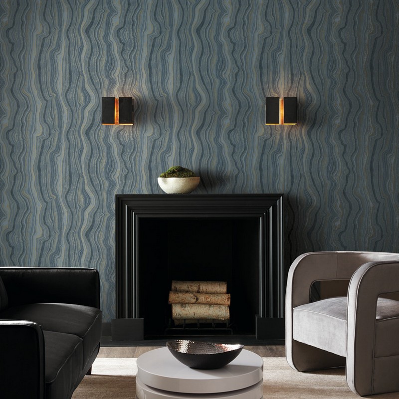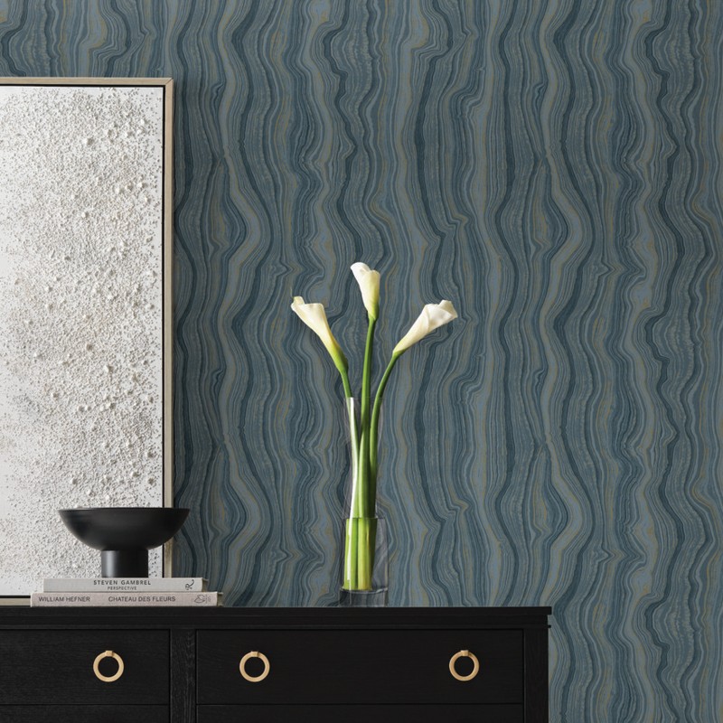 York Wallcovering  Mineral Shimmer Denim & Gold