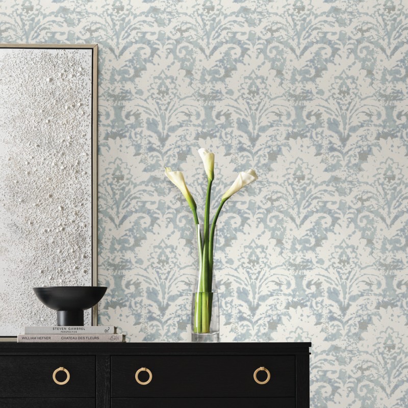 York Wallcovering Velvet Crush Damask Blue & Pearl
