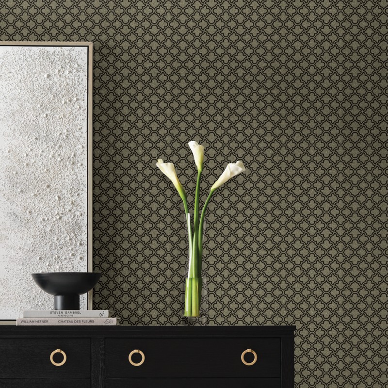 | Candice Olson Candice Olson Decadence II | Uptown Glam Black & Gold Wallpaper Match: Straight Page: 1 Repeat: 25.3 Washable Roll is 27 Inches in width and 27 Feet in Length With About 60.8 square feet Coverage Unpasted Strippable Paste the Wall Colors: Greens Glam Glass Beads |