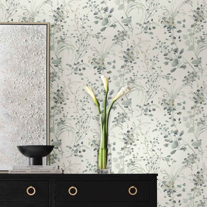 | Candice Olson Candice Olson Decadence II | Spring Whispers Moss Wallpaper Match: Drop Page: 52 Repeat: 24 Extra Washable Roll is 20.5 Inches in width and 33 Feet in Length With About 56.4 square feet Coverage Unpasted Strippable Paste the Wall Colors: Whites & Off-Whites Transitional Botanical |