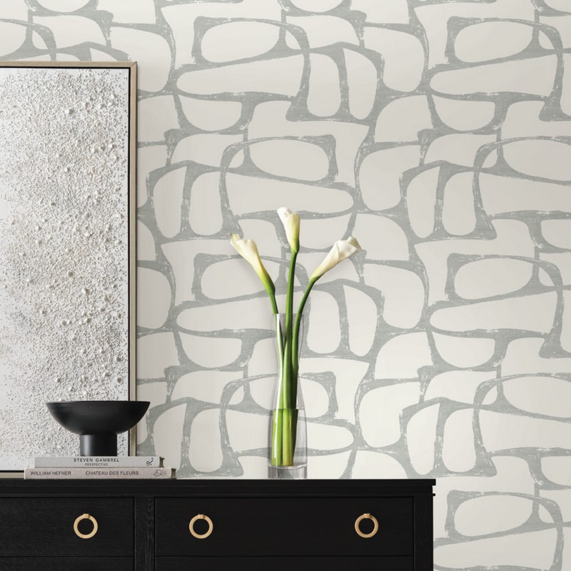 | Candice Olson Candice Olson Decadence II | Craftsman Geometric White & Silver Wallpaper Match: Straight Page: 6 Repeat: 25.3 Washable Roll is 27 Inches in width and 27 Feet in Length With About 60.8 square feet Coverage Unpasted Strippable Paste the Wall Colors: Whites & Off-Whites Modern Geometrics |