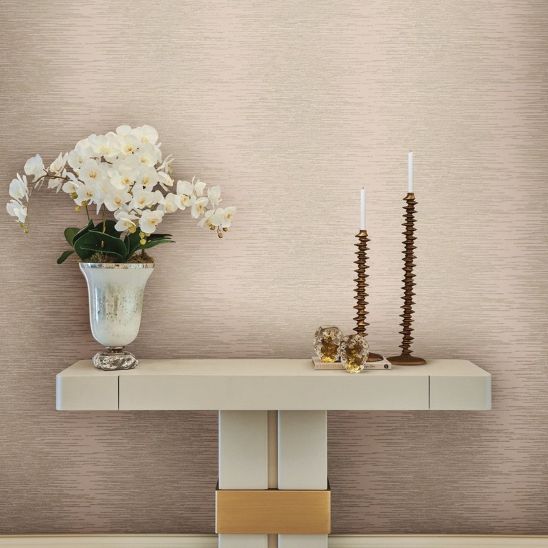 | Ronald Redding Caviar | Operetta Blush Metallic Columns Wallpaper Match: Straight Page: 6 Repeat: 12.63 Washable Roll is 27 Inches in width and 27 Feet in Length With About 60.8 square feet Coverage Unpasted Strippable Paste the Wall Colors: Pinks Modern Stripes Abstract |