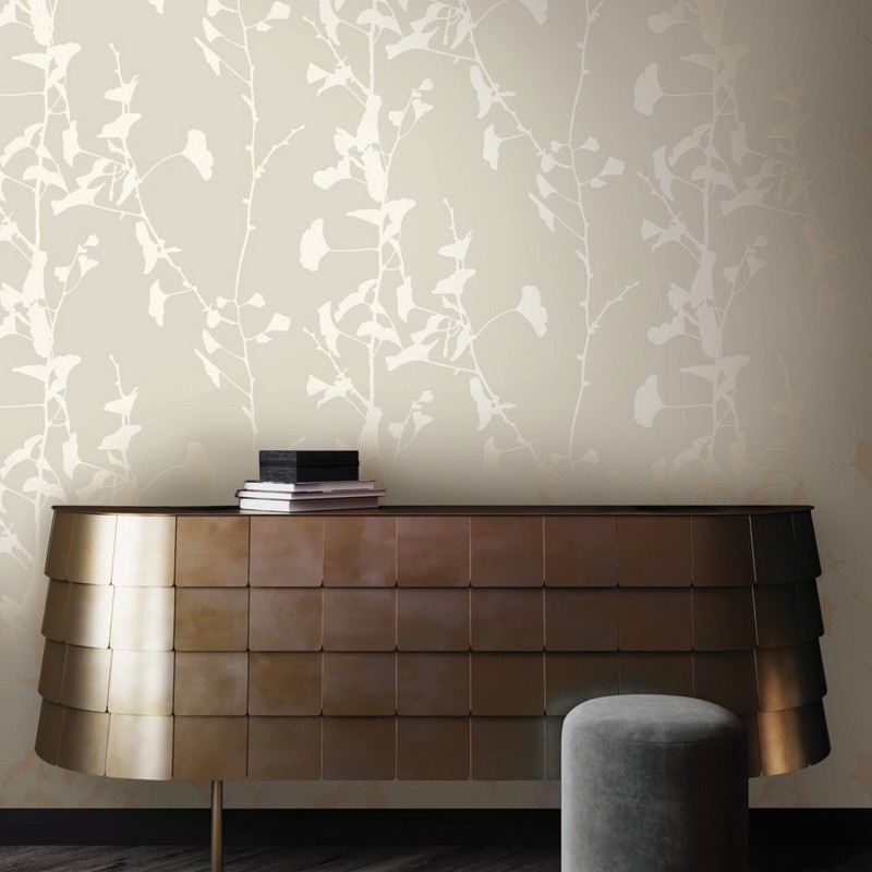 | Ronald Redding Caviar | Ginkgo Silhouette Taupe Cork Wallpaper Match: Drop Page: 34 Repeat: 25.25 Dust and Vacuum Roll is 27 Inches in width and 27 Feet in Length With About 60.8 square feet Coverage Unpasted Strippable Paste the Paper Colors: Neutrals Traditional Botanical Beach |