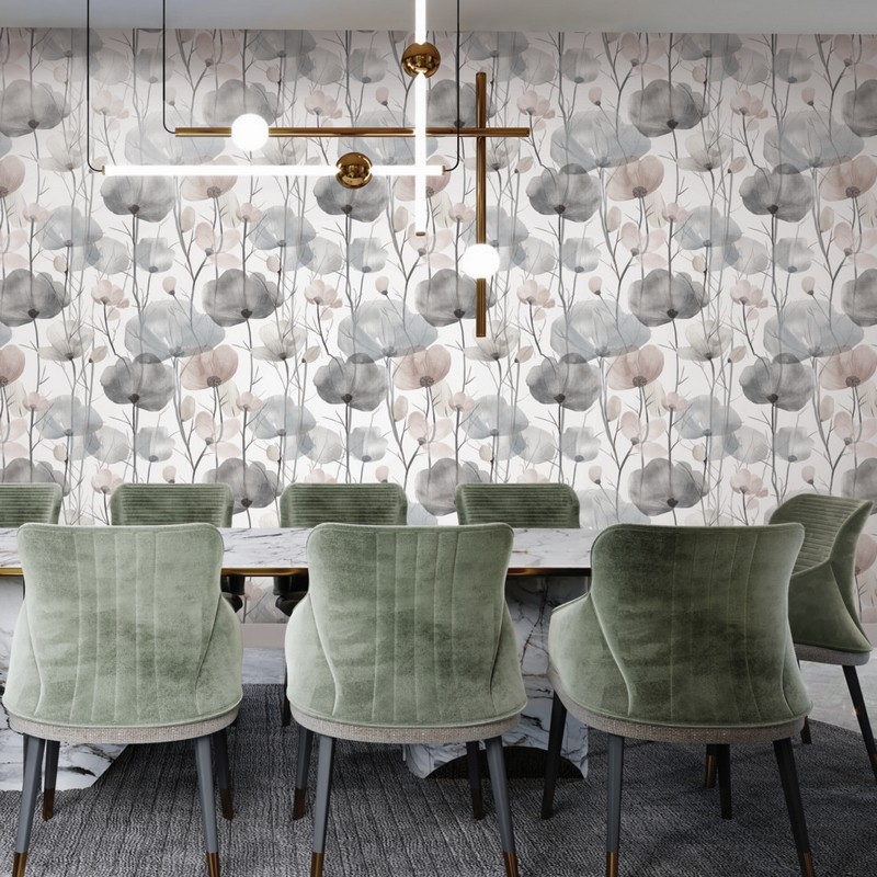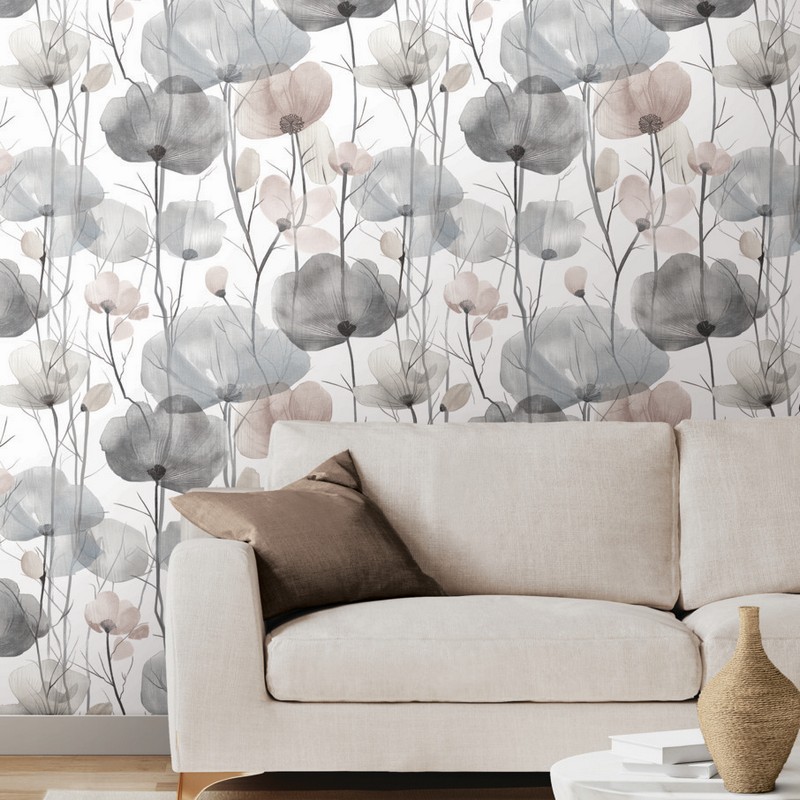 | Ronald Redding Caviar | Cotswolds Poppies Grey Floral Wallpaper Match: Straight Page: 11 Repeat: 27 Washable Roll is 27 Inches in width and 27 Feet in Length With About 60.8 square feet Coverage Unpasted Strippable Paste the Wall Colors: Greys Bohemian Flowers Botanical |