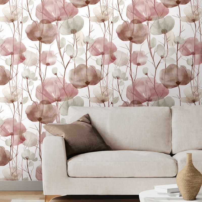Ronald Redding Caviar | Cotswolds Poppies Red Floral Wallpaper