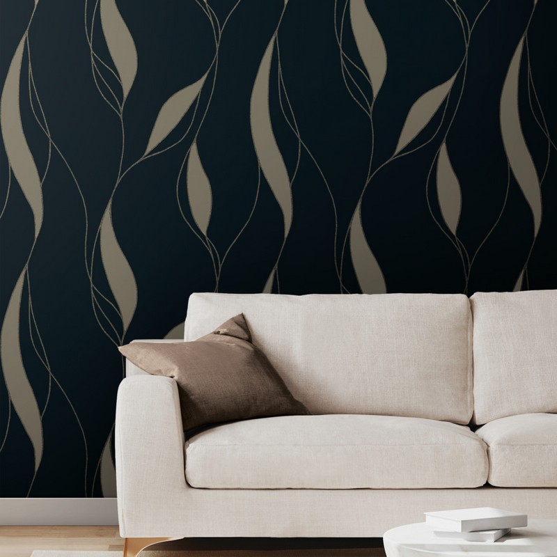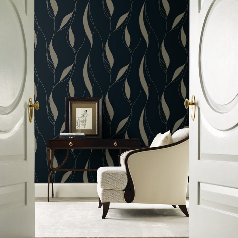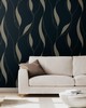 | Ronald Redding Caviar | Society Hill Black Abstract Leaf Wallpaper Match: Straight Page: 56 Repeat: 25.2 Washable Roll is 27 Inches in width and 26.9 Feet in Length With About 60.5 square feet Coverage Unpasted Strippable Paste the Wall Colors: Blacks Modern Botanical Abstract |