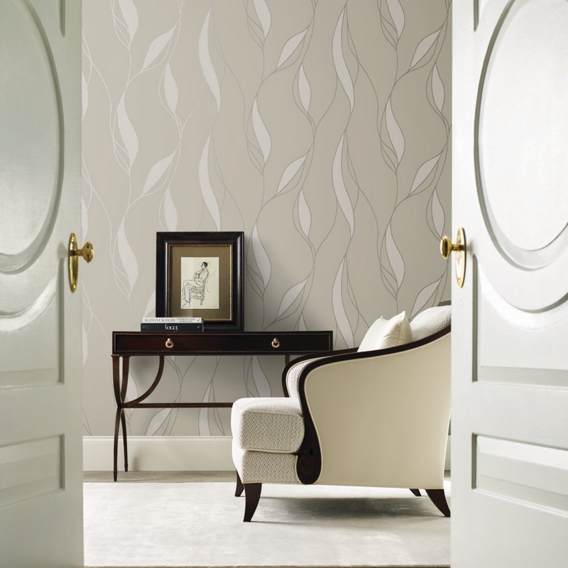 | Ronald Redding Caviar | Society Hill Dove Abstract Leaf Wallpaper Match: Straight Page: 59 Repeat: 25.2 Washable Roll is 27 Inches in width and 26.9 Feet in Length With About 60.5 square feet Coverage Unpasted Strippable Paste the Wall Colors: Greys Modern Botanical Abstract |