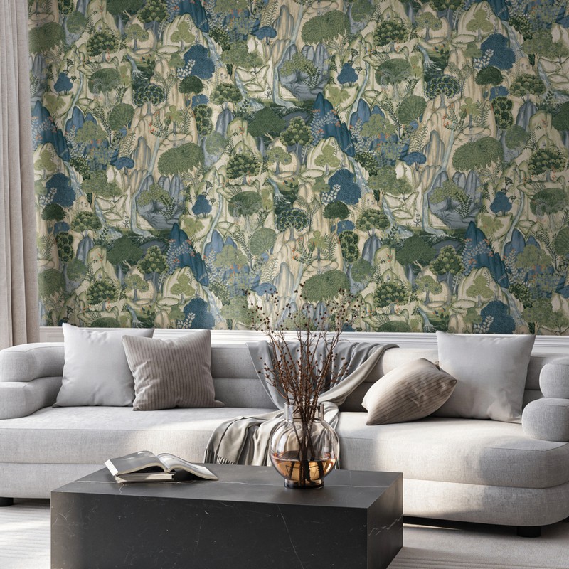 Ronald Redding Caviar | Falling Waters Sapphire Scenic Wallpaper