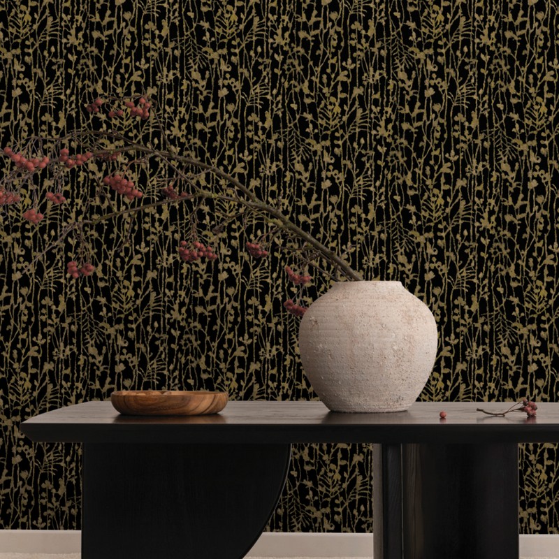 Ronald Redding Caviar | Filigree Black Abstract Wallpaper