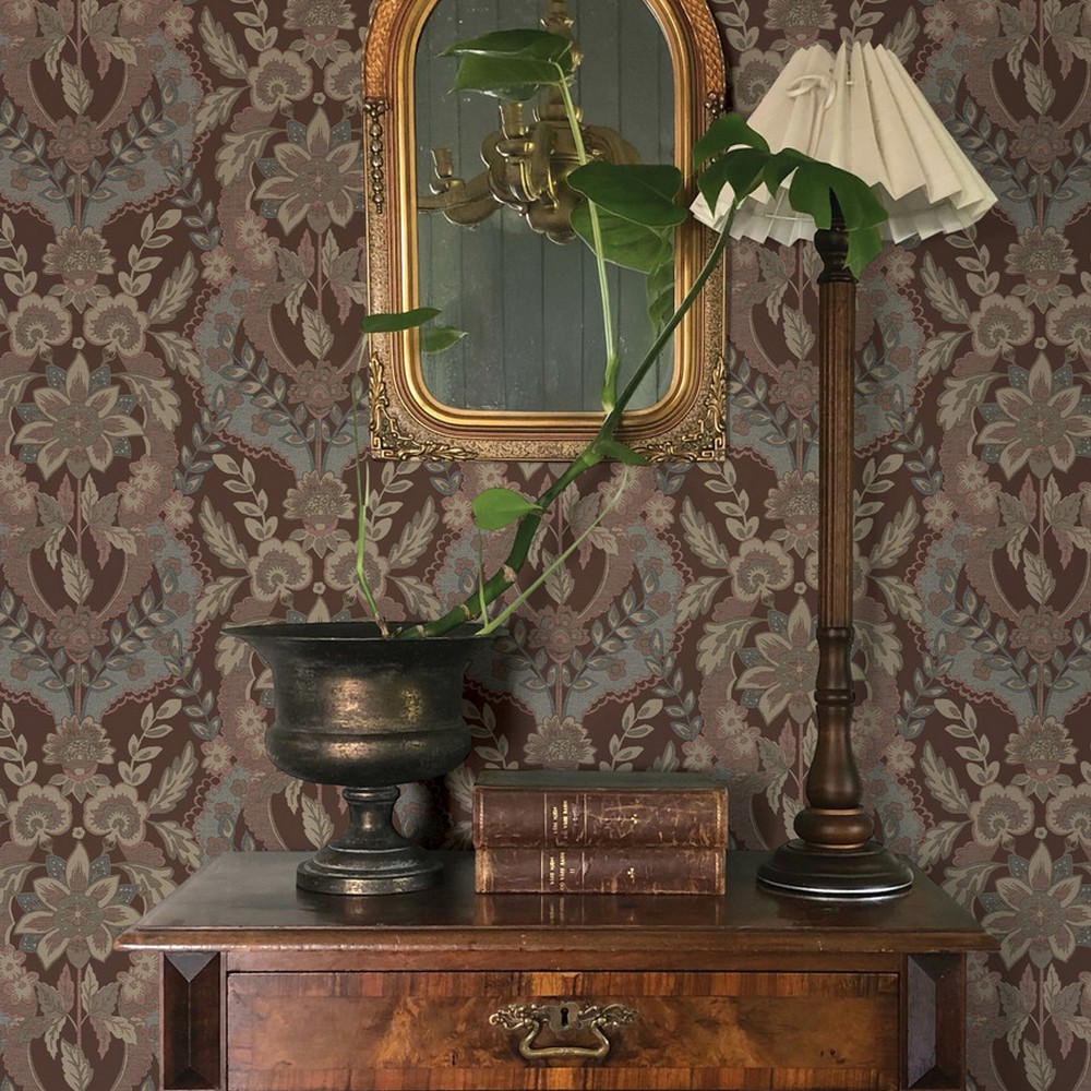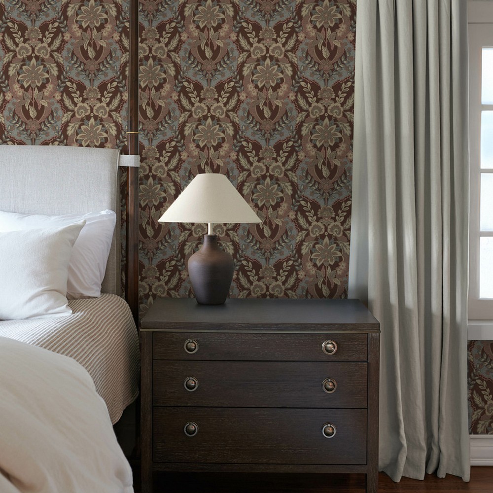 | A-Street Prints Chris Loves Julia | Collins Plum Damask Wallpaper Match: Straight Page: 61 Repeat: 20.9 Washable Roll is 20.5 Inches in width and 33 Feet in Length With About 56.4 square feet Coverage Unpasted Strippable Paste the Wall Colors: Purples Traditional Damask Botanical |