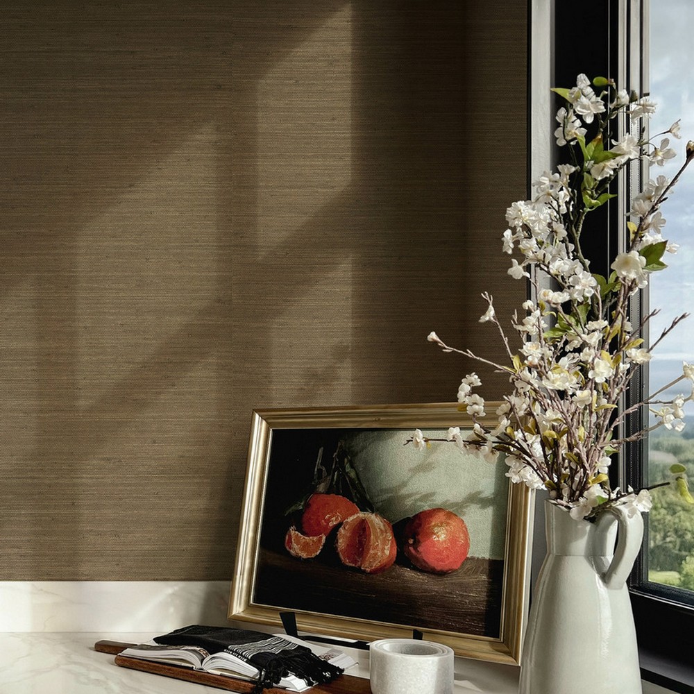 | A-Street Prints Chris Loves Julia | Mycroft Chestnut Grasscloth Wallpaper Match: Random Page: 18 Repeat: 0 Dust and Vacuum Roll is 36 Inches in width and 24 Feet in Length With About 72 square feet Coverage Unpasted Wet Removable Paste the Wall Colors: Browns Glam Texture Pattern Graphics |