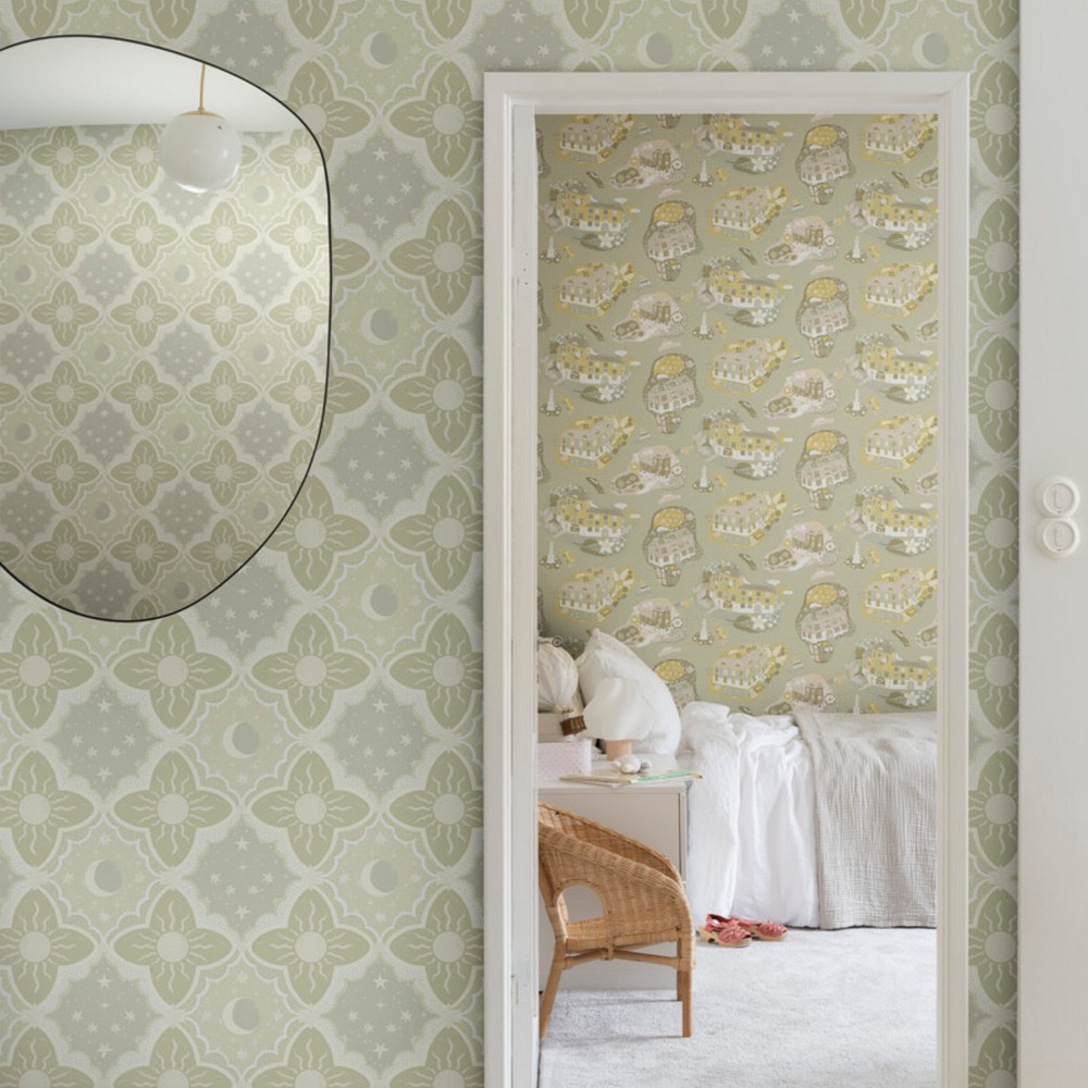 | York Wallcoverings Daydream | Staden Mustard Wallpaper Match: Drop Page: 26 Repeat: 20.9 Washable Roll is 20.9 Inches in width and 33 Feet in Length With About 57.5 square feet Coverage Unpasted Dry Strippable Paste the Wall Colors: Yellows Whimsical Novelty |
