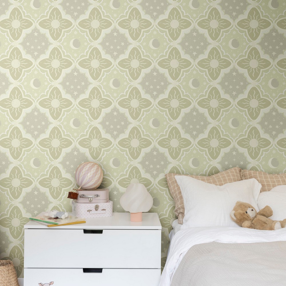 | York Wallcoverings Daydream | Sol & Mane Green Wallpaper Match: Straight Page: 30 Repeat: 20.9 Washable Roll is 20.9 Inches in width and 33 Feet in Length With About 57.5 square feet Coverage Unpasted Dry Strippable Paste the Wall Colors: Greens Whimsical Themes |