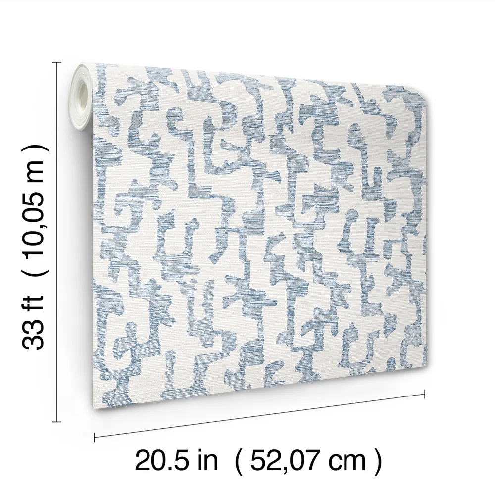 | A-Street Prints Drew & Jonathan Home Fifth Edition | Cipher Blue Geometric Faux Grasscloth Wallpaper Match: Straight Page: 8 Repeat: 20.9 Washable Roll is 20.5 Inches in width and 33 Feet in Length With About 56.4 square feet Coverage Unpasted Strippable Paste the Wall Colors: Blues Modern Geometrics Abstract |