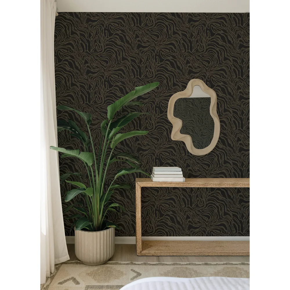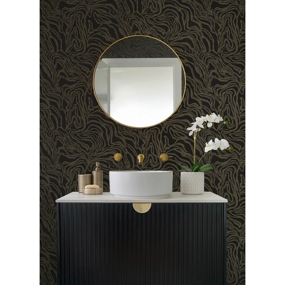 | A-Street Prints Drew & Jonathan Home Fifth Edition | Massar Black Modern Marbled Wallpaper Match: Half Drop Page: 32 Repeat: 20.9 Washable Roll is 20.5 Inches in width and 33 Feet in Length With About 56.4 square feet Coverage Unpasted Strippable Paste the Wall Colors: Blacks Glam Abstract Abstract |