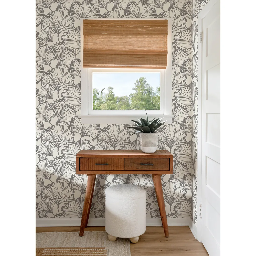 | A-Street Prints Drew & Jonathan Home Fifth Edition | Kyoto Charcoal Ginkgo Leaf Wallpaper Match: Straight Page: 38 Repeat: 20.9 Washable Roll is 20.5 Inches in width and 33 Feet in Length With About 56.4 square feet Coverage Unpasted Strippable Paste the Wall Colors: Greys Modern Leaves Botanical |