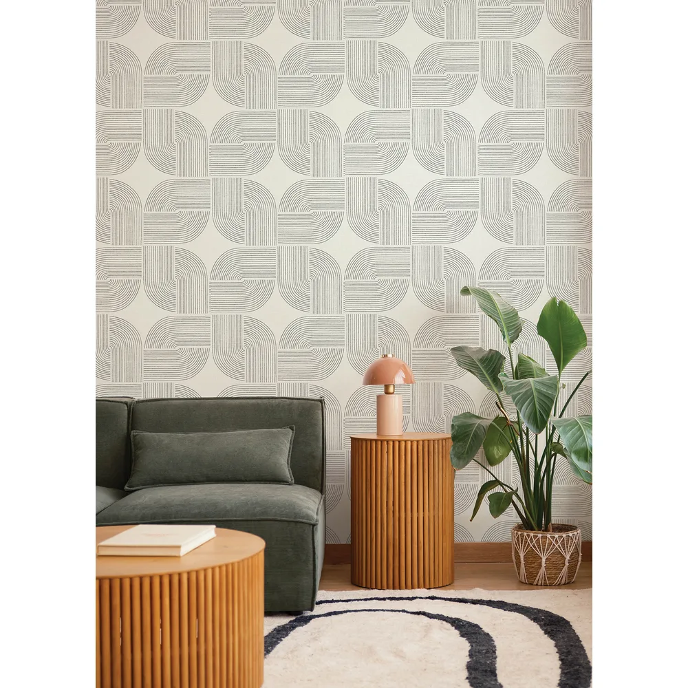 | A-Street Prints Drew & Jonathan Home Fifth Edition | Savoye Black Spiral Arches Wallpaper Match: Straight Page: 46 Repeat: 20.9 Washable Roll is 20.5 Inches in width and 33 Feet in Length With About 56.4 square feet Coverage Unpasted Strippable Paste the Wall Colors: Blacks Retro Geometrics Graphics |