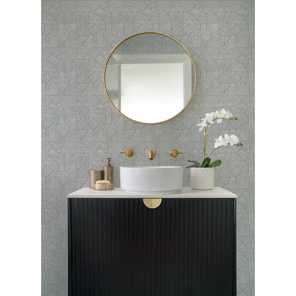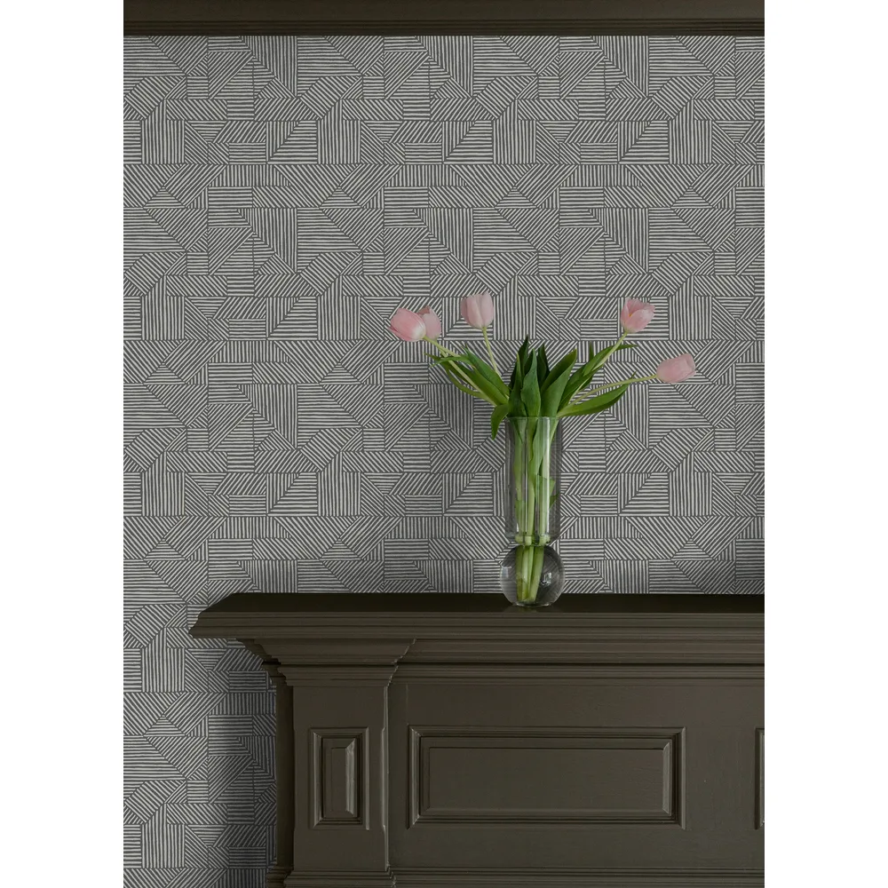 | A-Street Prints Drew & Jonathan Home Fifth Edition | Crescendo Dark Grey Block Geometric Wallpaper Match: Straight Page: 19 Repeat: 10.25 Washable Roll is 20.5 Inches in width and 33 Feet in Length With About 56.4 square feet Coverage Unpasted Strippable Paste the Wall Colors: Greys Modern Geometrics Graphics |