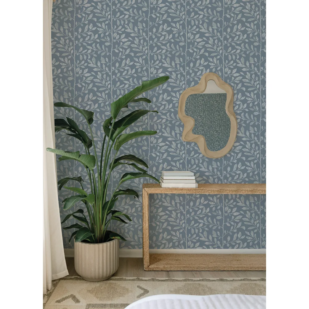 | A-Street Prints Drew & Jonathan Home Fifth Edition | Sagecrest Blue Sapling Wallpaper Match: Straight Page: 51 Repeat: 25.25 Washable Roll is 27 Inches in width and 27 Feet in Length With About 60.8 square feet Coverage Unpasted Strippable Paste the Wall Colors: Blues Modern Trees Botanical |