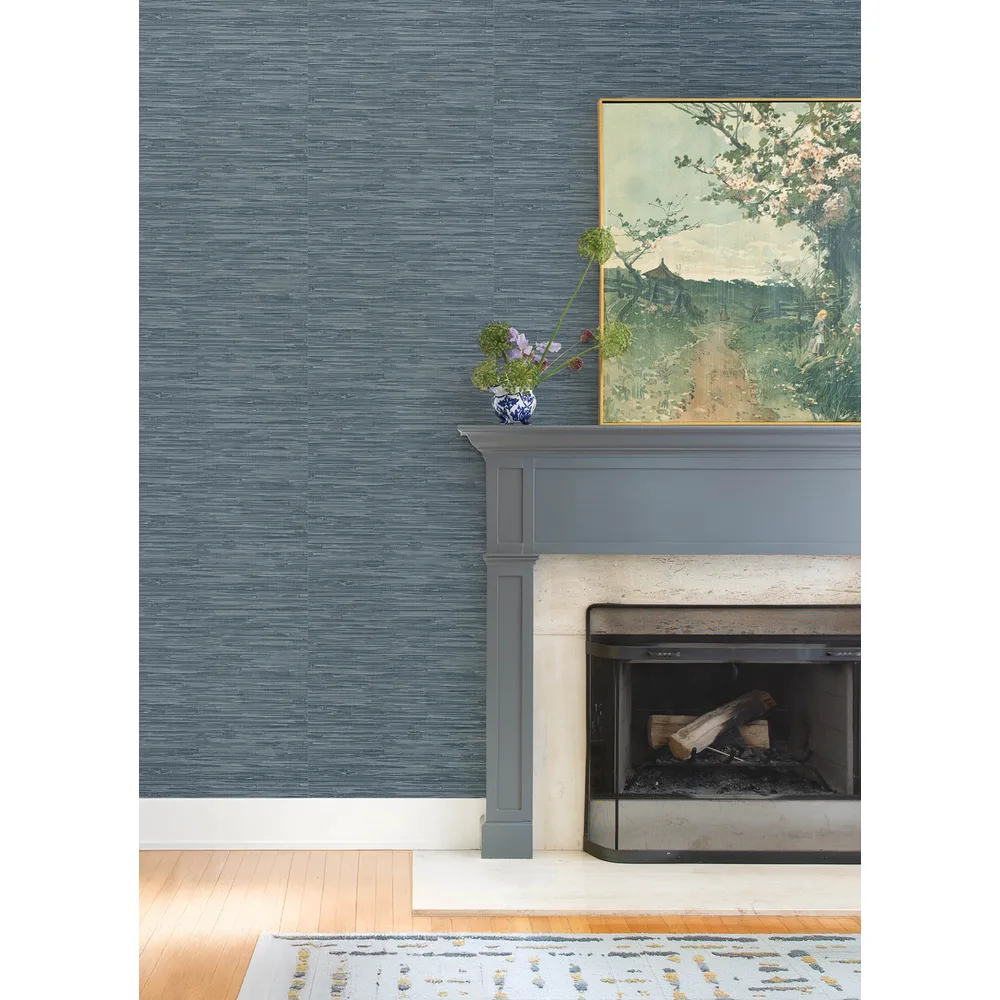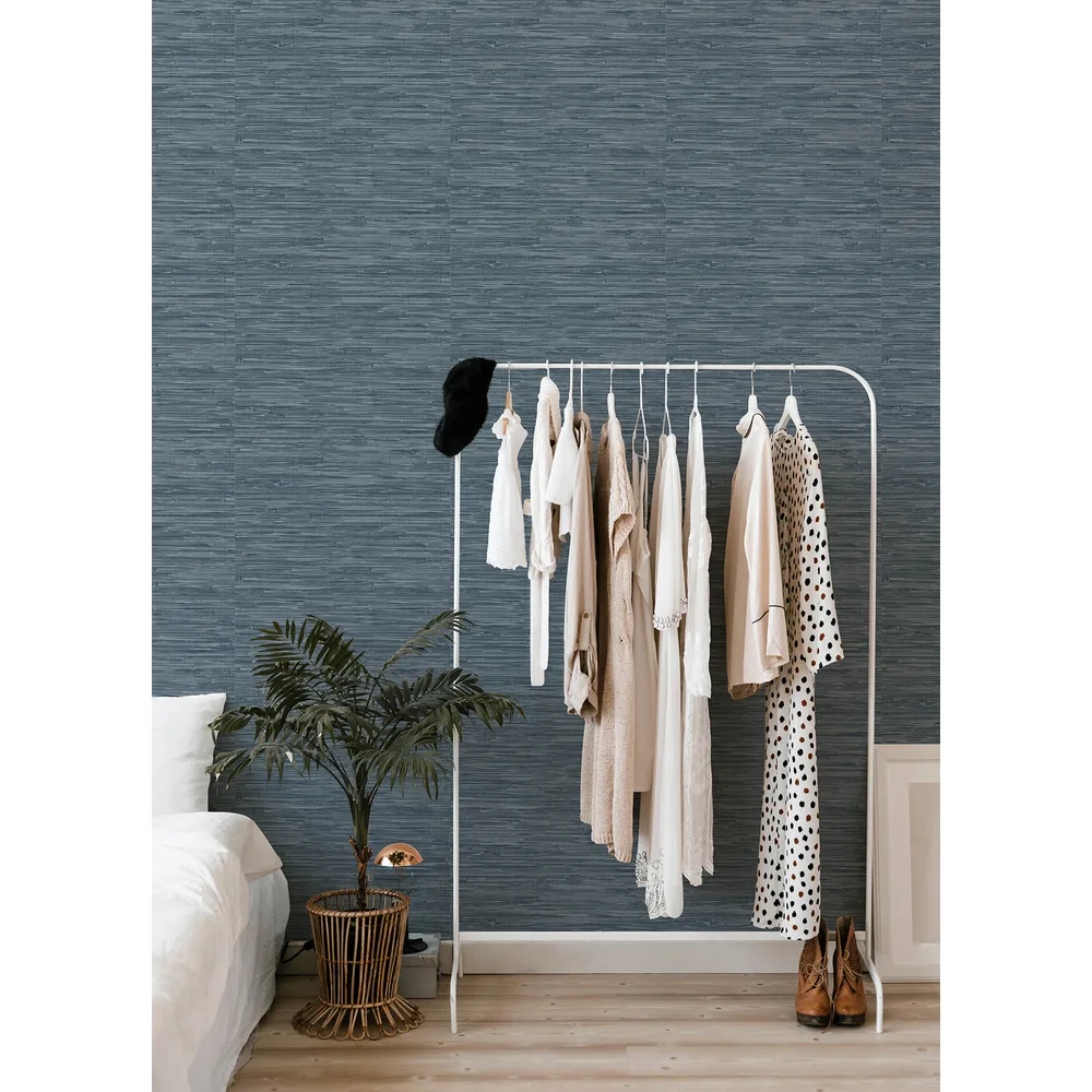 A-Street Prints Haberdashery | Exhale Indigo Woven Faux Grasscloth Wallpaper