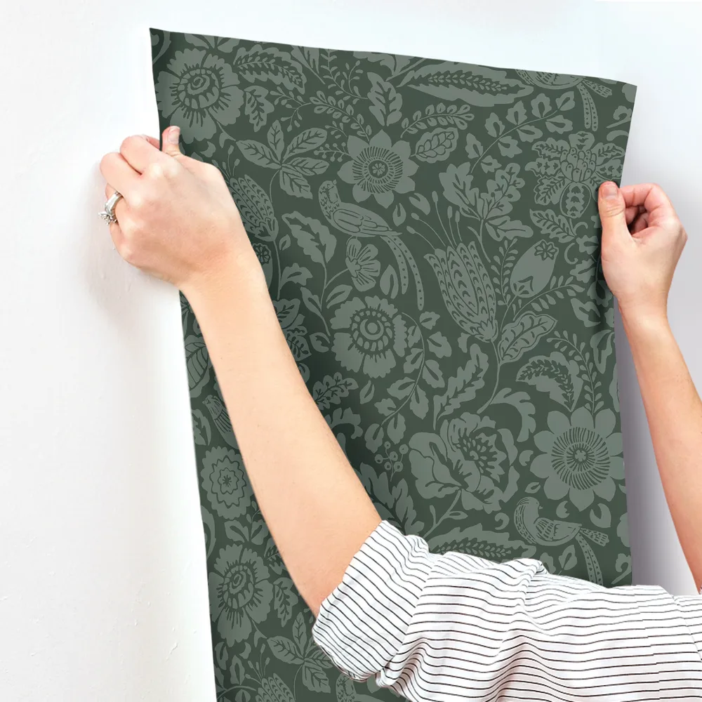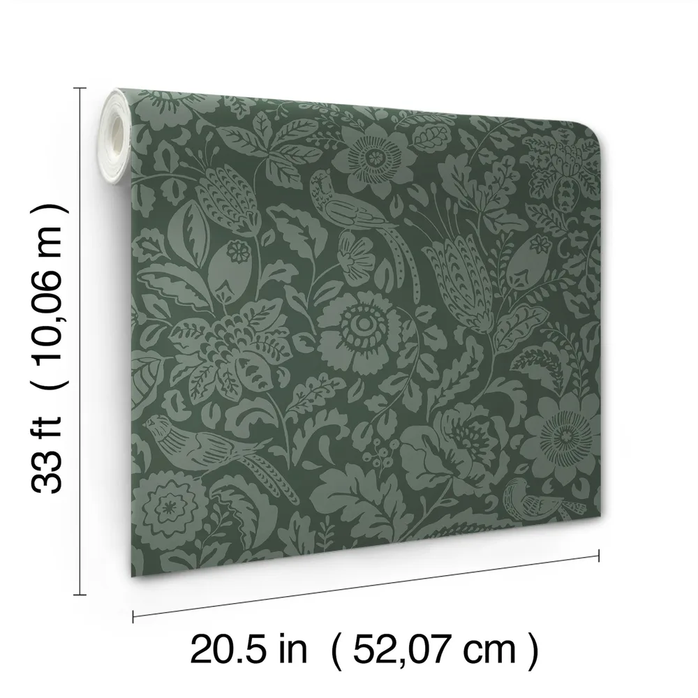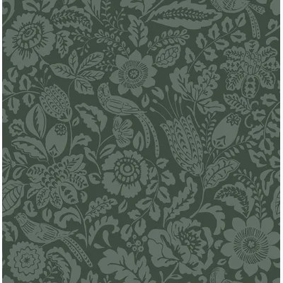 | A-Street Prints Haberdashery | Marta Green Floral Trail Wallpaper Match: Straight Page: 8 Repeat: 20.9 Washable Roll is 20.5 Inches in width and 33 Feet in Length With About 56.4 square feet Coverage Unpasted Strippable Paste the Wall Colors: Greens Traditional Flowers Botanical |