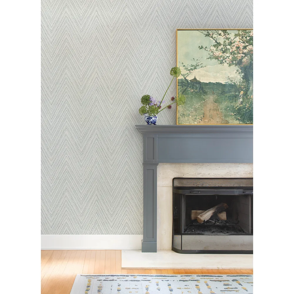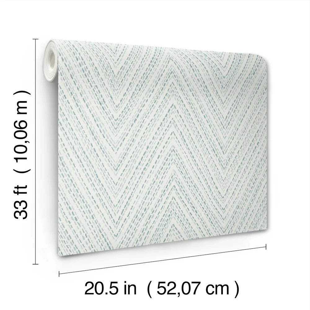 A-Street Prints Haberdashery | Lainey Blue Stitched Chevron Wallpaper